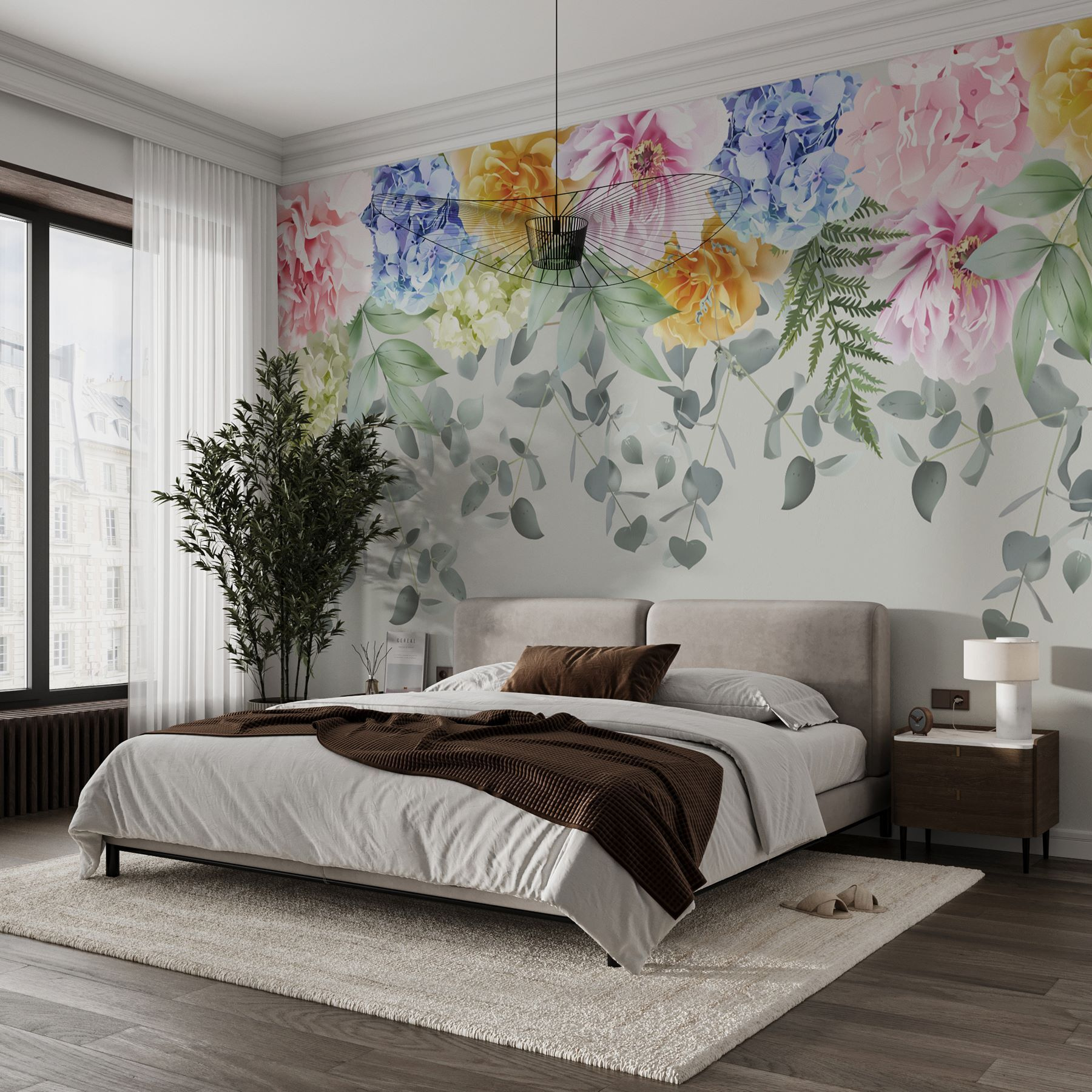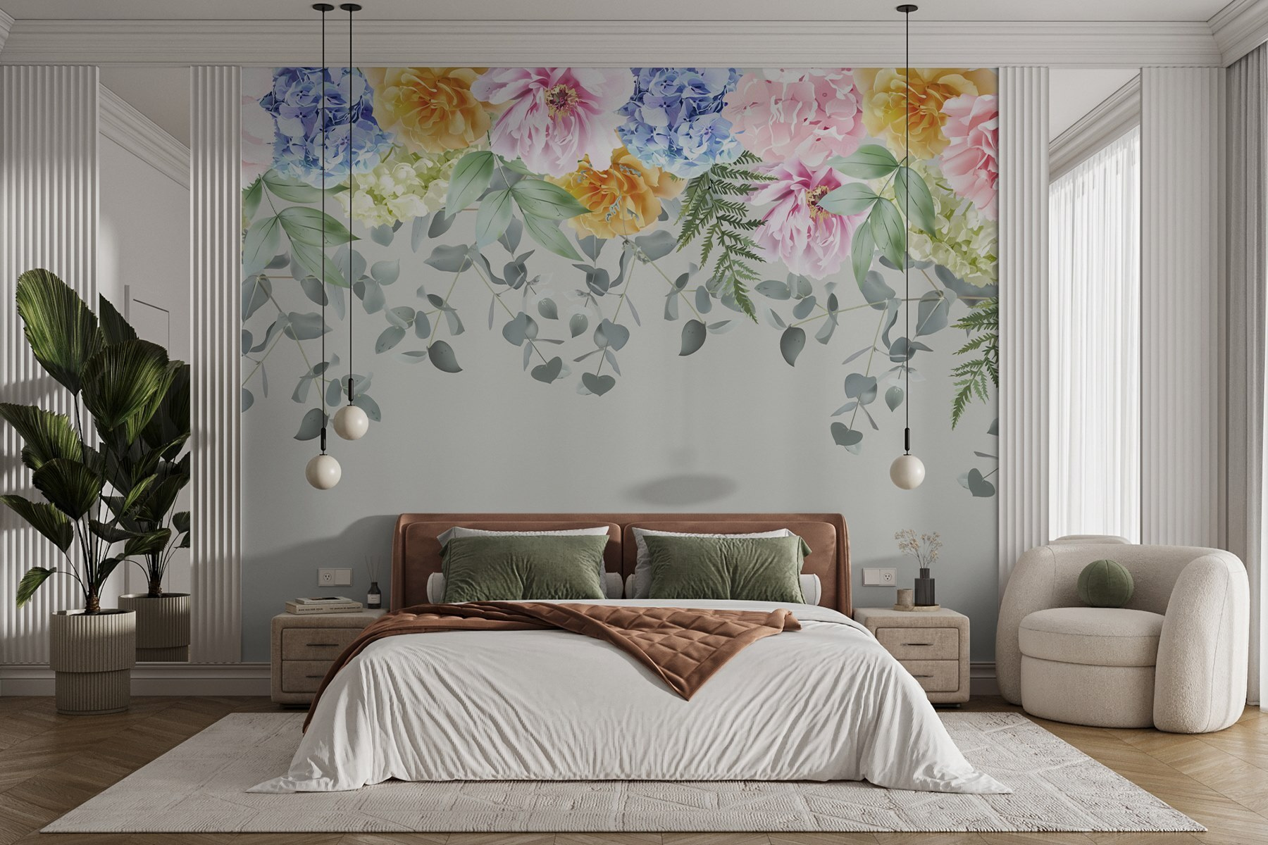 Verwandeln Sie jeden Raum in ein Blumenparadies mit dieser atemberaubenden Fototapete, die eine lebendige Gruppe von Blumen und Blättern zeigt. Stellen Sie sich vor, Sie betreten Ihren Raum und werden von blühenden Pfingstrosen und zarten Hortensien begrüßt – fast so, als hätte die Natur beschlossen, sich an Ihrer Wand niederzulassen! Dieses Wandbild eignet sich perfekt, um einen Hauch von Wärme und Fröhlichkeit zu verbreiten, und ist ein toller Gesprächsanlass – die Art von Wandbild, die die Leute innehalten und lächeln lässt: “Wow, das ist so schön!” Und wer würde sich nicht über ein wenig von der Natur inspirierte Freude in seinem Zuhause freuen? Ob im Wohnzimmer oder in einer gemütlichen Ecke, diese Fototapete bringt Leben und Farbe in die Wohnung und macht aus einem tristen Raum etwas ganz Besonderes. Stellen Sie sich vor, wie Sie es sich in diesem Raum gemütlich machen, umgeben von diesen wunderschönen Blüten – ach, was für ein Glück!