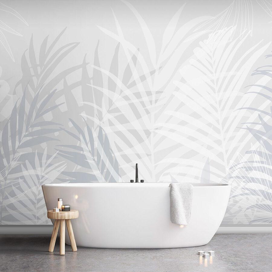 Verwandeln Sie Ihren Raum mit dieser wunderschönen Fototapete mit einem ruhigen grauen und weißen Hintergrund, der spielerisch mit zarten Blättern verziert ist. Es ist, als ob Sie sich die Ruhe des Waldes in Ihr Wohnzimmer holen würden. Stellen Sie sich vor, Sie wachen auf und haben das Gefühl, von der Natur umgeben zu sein – ohne das morgendliche Vogelkonzert. Dieses Wandbild ist ideal für alle, die ein minimalistisches Ambiente lieben, aber dennoch einen Hauch von Tropen wünschen, und fügt sich mühelos in jede Einrichtung ein. Perfekt, um eine gemütliche Leseecke oder einen schicken Essbereich zu gestalten. Wer hätte gedacht, dass Pflanzen so entspannt sein können? Absolut zauberhaft!