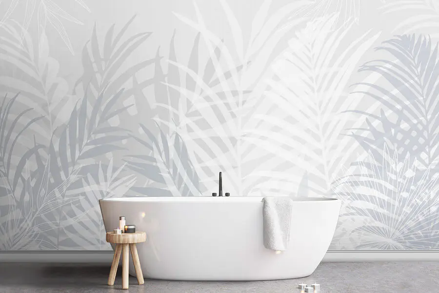 Verwandeln Sie Ihren Raum mit dieser wunderschönen Fototapete mit einem ruhigen grauen und weißen Hintergrund, der spielerisch mit zarten Blättern verziert ist. Es ist, als ob Sie sich die Ruhe des Waldes in Ihr Wohnzimmer holen würden. Stellen Sie sich vor, Sie wachen auf und haben das Gefühl, von der Natur umgeben zu sein – ohne das morgendliche Vogelkonzert. Dieses Wandbild ist ideal für alle, die ein minimalistisches Ambiente lieben, aber dennoch einen Hauch von Tropen wünschen, und fügt sich mühelos in jede Einrichtung ein. Perfekt, um eine gemütliche Leseecke oder einen schicken Essbereich zu gestalten. Wer hätte gedacht, dass Pflanzen so entspannt sein können? Absolut zauberhaft!