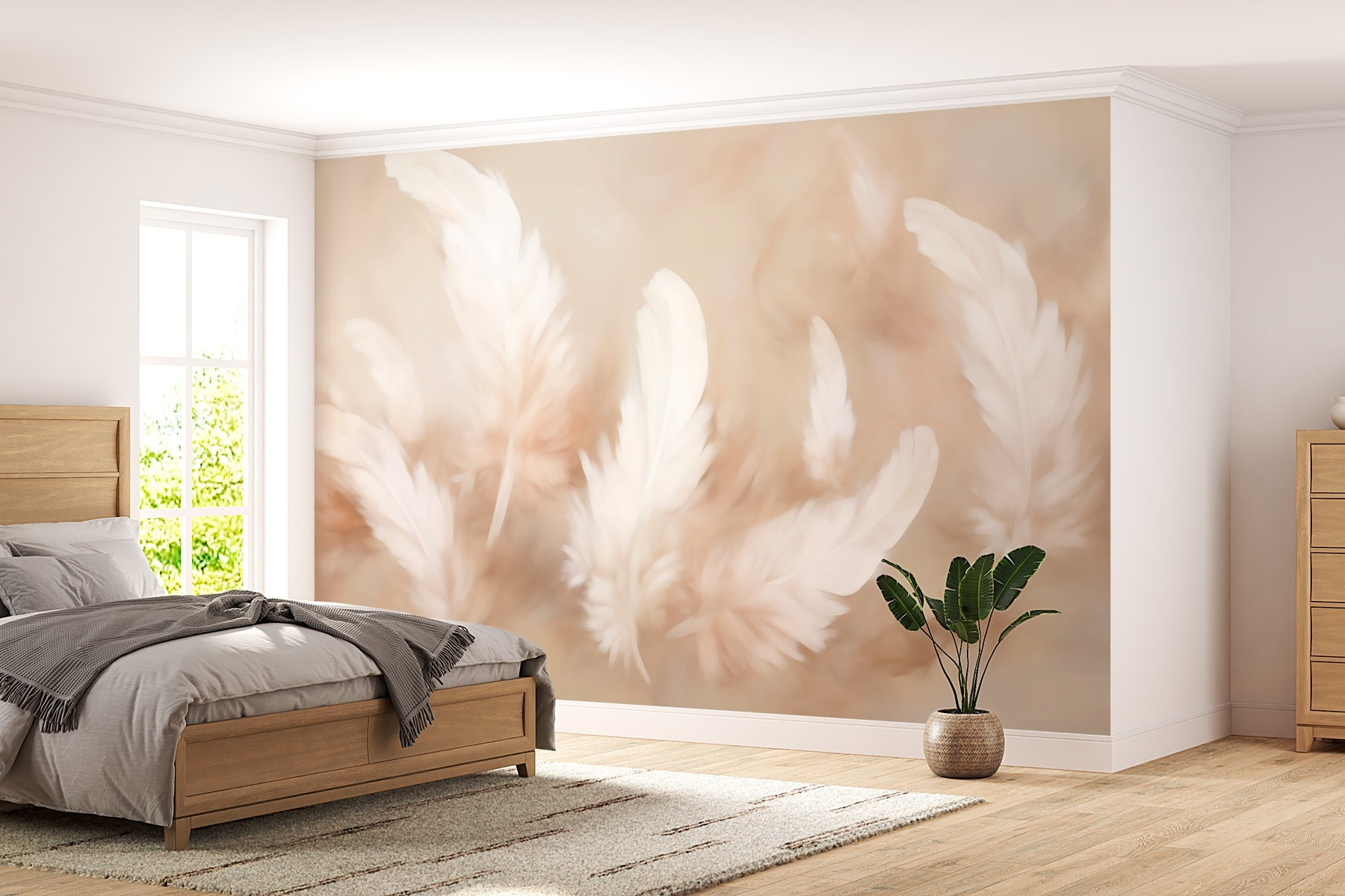 Verwandeln Sie Ihren Raum mit dieser heiteren Fototapete “Group of White Feathers”. Es ist wie ein sanftes Flüstern der Natur, das Frieden und Ruhe in jeden Raum einlädt. Stellen Sie sich dieses weiche Aquarell vor, das sanft an Ihrer Wand flattert – Federn in warmen, erdigen Tönen, die sich wie eine kuschelige Umarmung anfühlen.
