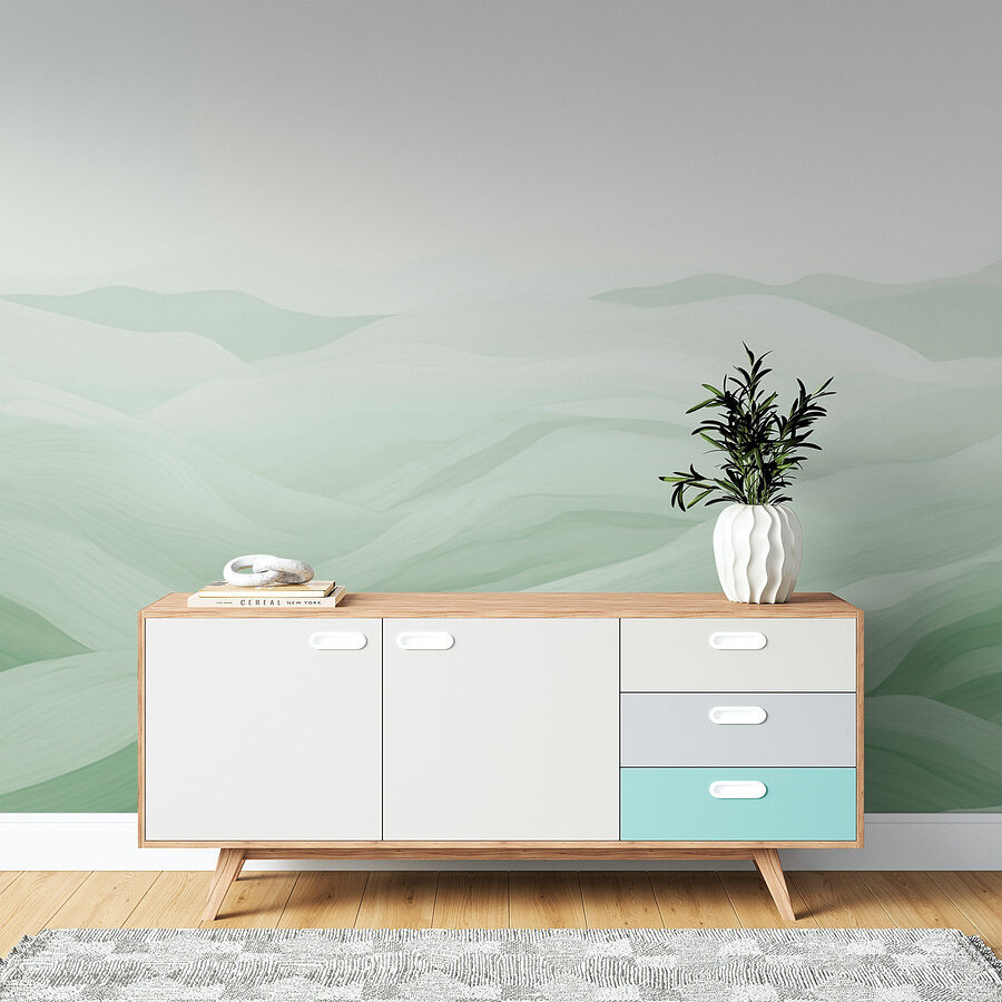 Stellen Sie sich vor, dass Sie jedes Mal, wenn Sie Ihre Wand betrachten, in eine ruhige, verträumte Landschaft eintauchen. Dieses Wandbild mit seinen sanften Grüntönen und weichen, fließenden Formen bringt eine friedliche Stimmung in jeden Raum. Stellen Sie sich vor, wie es eine gemütliche Ecke erhellt oder als atemberaubende Kulisse für Ihre kleine Leseecke dient. Der subtile Aquarelleffekt verleiht ihm einen Hauch von Laune und lässt es wie einen geheimen Garten oder einen nebligen Morgen erscheinen. Es ist, als ob man sich ein Stück Natur ins Haus holt – perfekt für die Tage, an denen es nicht möglich ist, den Sonnenuntergang draußen zu genießen. Vollkommen unaufdringlich und doch so fesselnd!
