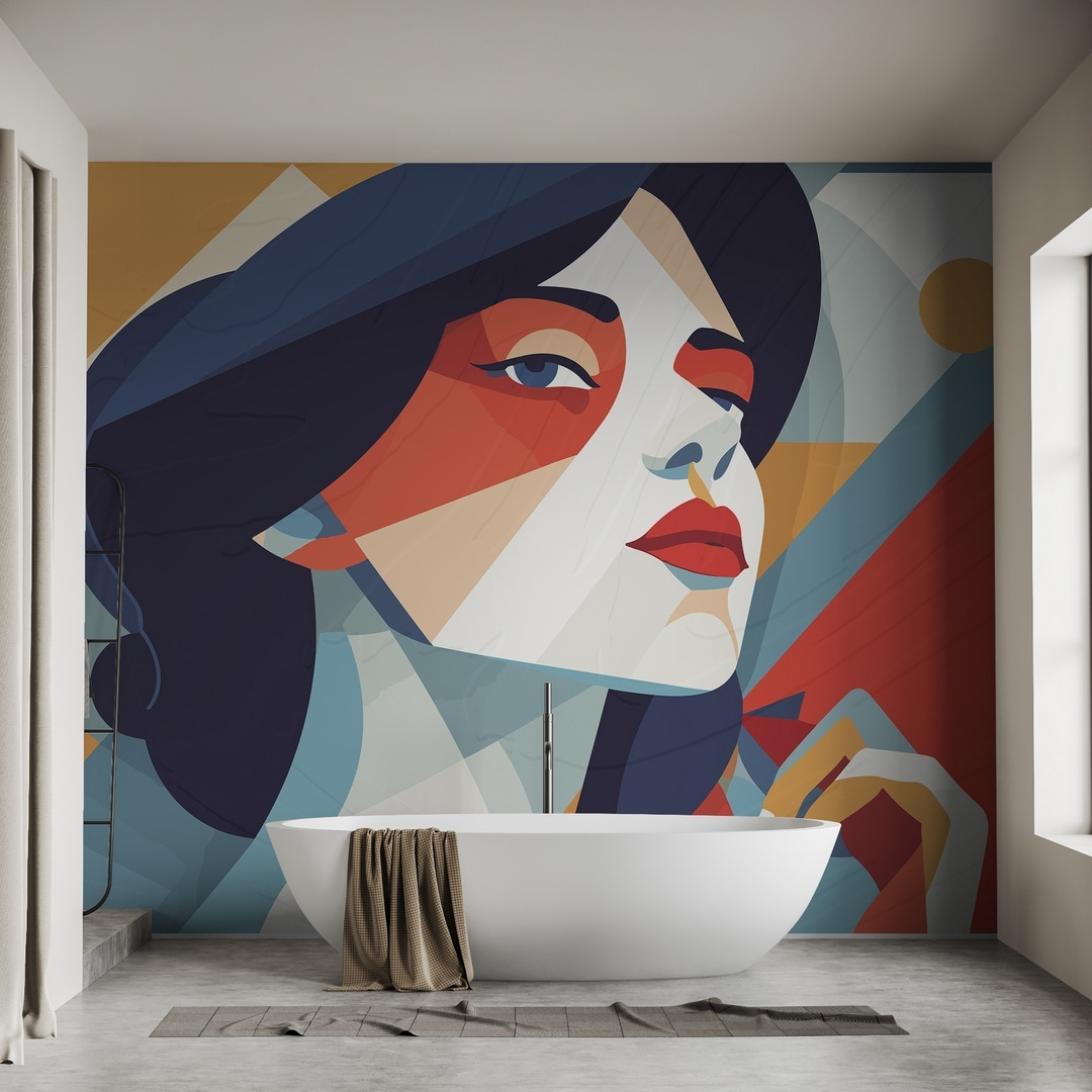 Verwandeln Sie jeden Raum in ein lebhaftes Fest des Stils mit dieser atemberaubenden Fototapete, die eine Frau mit verspielten blauen Haaren und auffälligem rot-weißem Make-up zeigt. Stellen Sie sich vor, Sie betreten einen Raum, der sofort zu Gesprächen anregt – Ihre Freunde werden fasziniert sein, und Sie werden vielleicht sogar ein paar Komplimente bekommen. Die kräftigen Farben und faszinierenden Linien verleihen dem Bild einen Hauch von Energie und machen es perfekt für einen persönlichen Rückzugsort oder einen lebhaften Gemeinschaftsbereich. Es ist, als hätte man einen stilvollen Freund an der Wand, der immer bereit ist, die Stimmung aufzuhellen und die Kreativität anzuregen. Dieses Wandbild ist nicht nur Dekoration, sondern ein Erlebnis, das jeden Raum zu etwas Besonderem macht.