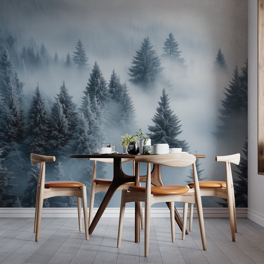 Verwandeln Sie Ihren Raum in ein Winterwunderland mit dieser atemberaubenden Fototapete, die eine verträumte Gruppe verschneiter Bäume zeigt. Es ist, als würde man in einen ruhigen Wald eintreten, in dem sich jeder Blick wie eine kuschelige Umarmung der Natur anfühlt. Stellen Sie sich vor, Sie nippen an Ihrem Lieblingsheißgetränk, eingewickelt in eine Decke, und betrachten die weichen, schneebedeckten Äste, die sich immer leicht wiegen. Dieses Wandbild eignet sich perfekt für ein Wohnzimmer oder ein ruhiges Schlafzimmer. Es lädt zu Ruhe und Frieden ein und entführt jeden, der es betritt, mühelos in ein flüsterndes Waldgebiet. Wer würde sich nicht gerne ein Stück dieser Magie ins Haus holen?