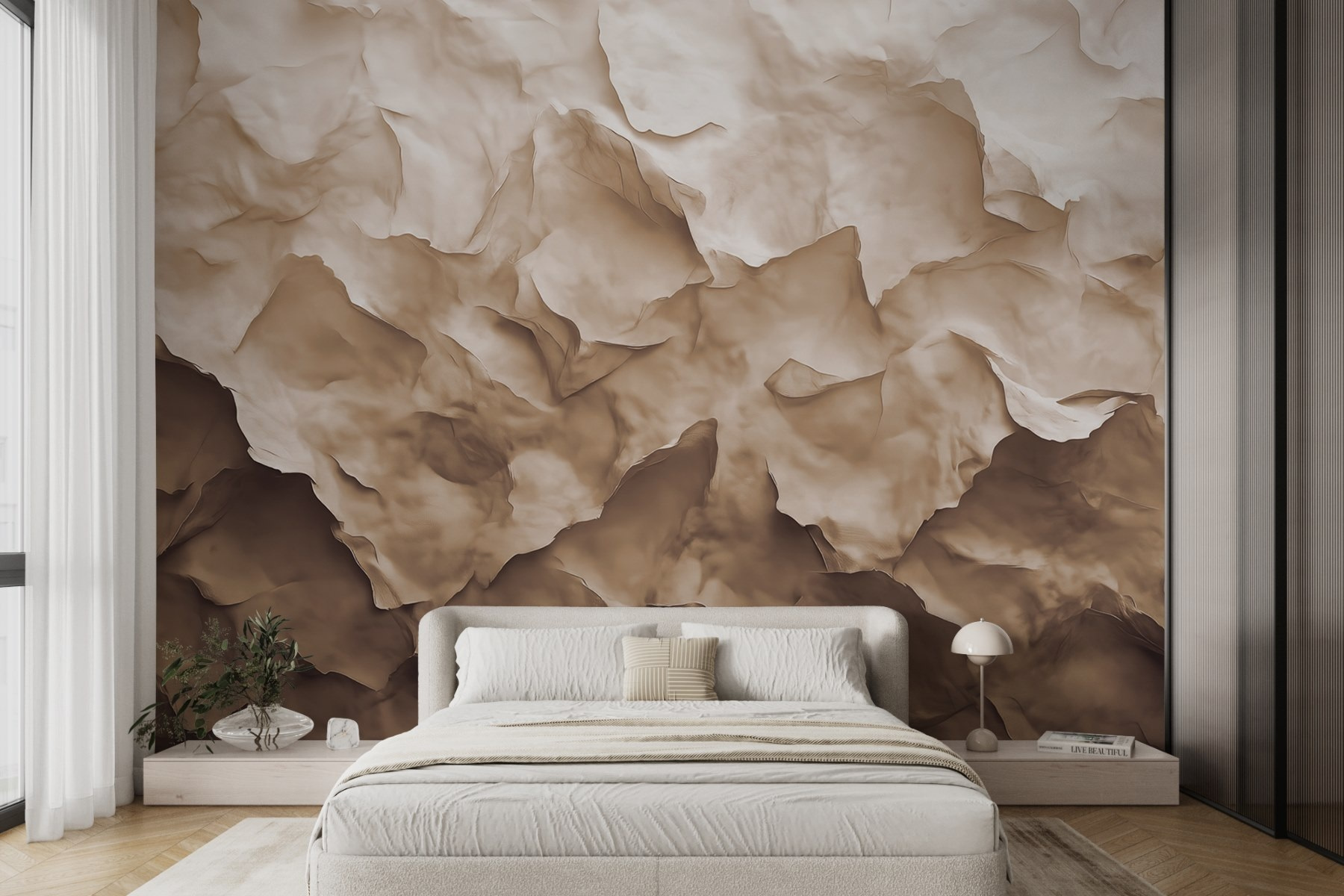 Verwandeln Sie Ihren Raum mit dieser atemberaubenden Fototapete, die aus mehreren Schichten organischer Formen besteht, die vor Tiefe und Faszination tanzen. Stellen Sie sich eine gemütliche Ecke vor, in der das Licht die sanften Konturen widerspiegelt und eine Atmosphäre schafft, die sowohl beruhigend als auch inspirierend ist. Es ist nicht nur eine Dekoration – dieses Wandbild erzählt eine Geschichte und lädt Sie dazu ein, sich in seinen erdigen Tönen zu verlieren. Stellen Sie sich vor, Sie schlürfen Ihren Morgenkaffee, während Sie sich sanft in Gedanken verlieren, oder Sie empfangen Freunde, die nicht anders können, als die Wand zu berühren, angezogen von ihrem einzigartigen Design. Es ist ein Gesprächsanlass, eine Kulisse für Erinnerungen und ein künstlerischer Rückzugsort in einem. Willkommen an Ihrem neuen Lieblingsplatz im Haus!