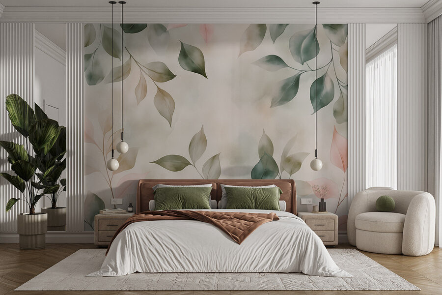Verwandeln Sie jeden Raum in einen beruhigenden Zufluchtsort mit dem Wandbild “Delicate Leaves in Soft Hues”. Stellen Sie sich vor: Wenn Sie Ihren Raum betreten, ist es, als würden Sie einen ruhigen Garten betreten, in dem sanfte Grüntöne und zarte Blush-Töne Sie umgeben. Diese Fototapete strahlt Ruhe aus und lädt zu gemütlichen Stunden und faulen Nachmittagen mit einem Buch ein. Stellen Sie sich vor, Sie haben Freunde zu Gast, und während diese das Wandbild bewundern, erwähnen Sie beiläufig, dass Ihr Zimmer dadurch wie ein friedlicher Rückzugsort wirkt. Es ist nicht nur Dekoration, es ist wie ein frischer Wind für Ihre Wände. Perfekt für Naturliebhaber oder alle, die einen Hauch von Ruhe brauchen!