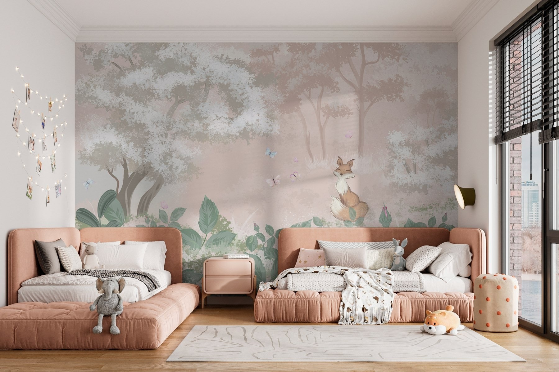 Verwandeln Sie Ihren Raum mit dieser bezaubernden Fototapete, die einen charmanten Fuchs und flatternde Schmetterlinge vor einem ruhigen Waldhintergrund zeigt. Es ist wie ein kleines Stück Natur direkt in Ihrem Wohnzimmer. Stellen Sie sich vor, Sie machen es sich mit einem guten Buch auf der Couch gemütlich und haben das Gefühl, in einen skurrilen Wald eingetaucht zu sein. Die sanften Farben schaffen eine beruhigende Atmosphäre, die zu einem Gefühl der Ruhe einlädt. Jeder Blick könnte Ihnen ein Lächeln entlocken, denn der Fuchs scheint über Sie zu wachen, und die Schmetterlinge? Entzückende kleine Gefährten. Perfekt, um jeder Ecke einen atemberaubenden Charme zu verleihen – ein Wandbild zum Wohlfühlen, das sagt: “Entspann dich, die Natur ist gleich hier!”