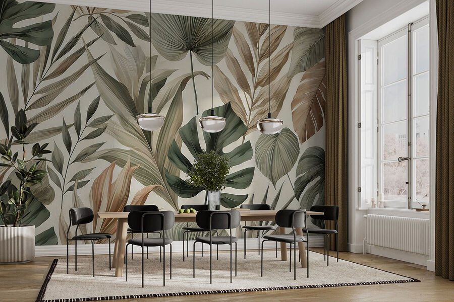 Verwandeln Sie jeden Raum in eine tropische Oase mit dieser atemberaubenden Fototapete mit üppigen Blättern und Erdtönen. Stellen Sie sich vor, Sie wachen auf und haben das Gefühl, in einem ruhigen Regenwald zu sein – klingt traumhaft, oder? Ob im Wohnzimmer oder in einer gemütlichen Leseecke – die Mischung aus Grüntönen und sanften Brauntönen schafft eine beruhigende Atmosphäre, perfekt für die Momente, in denen das Erwachsensein ein bisschen zu viel wird. Außerdem ist es wie ein Mini-Urlaub zu Hause. Wundern Sie sich nur nicht, wenn Ihre Freunde Sie fragen, wann Sie eine Strandparty veranstalten! Dieses Wandbild ist einfach anzubringen und wird mit Sicherheit einige von der Natur inspirierte Gespräche anregen – ein frischer Wind für jeden Raum.