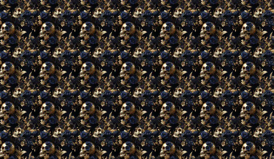 Tauchen Sie ein in eine Welt, in der Eleganz und Makabres aufeinandertreffen – mit diesem atemberaubenden “Fototapeten Pattern of Skulls and Flowers”. Stellen Sie sich vor, Sie betreten einen Raum, und zack – da sind sie, diese wunderschönen Totenköpfe, eingebettet zwischen leuchtenden Blüten. Das ist wie eine rebellische Gartenparty an deinen Wänden! Die satten Farben sorgen für eine gemütliche Atmosphäre und eignen sich perfekt für eine Bohème-Ecke oder sogar für eine dramatische Akzentwand. Stellen Sie sich vor, Sie schlürfen einen Kaffee und bewundern die einzigartige Mischung aus Schönheit und Schärfe. Es ist nicht nur Dekoration, sondern auch ein Gesprächsanlass. Wer würde nicht gerne über ein Wandgemälde plaudern, das das Leben und das Leben nach dem Tod mit Stil verbindet? Perfekt für alle, die gerne auffallen, ohne nach Aufmerksamkeit zu schreien!