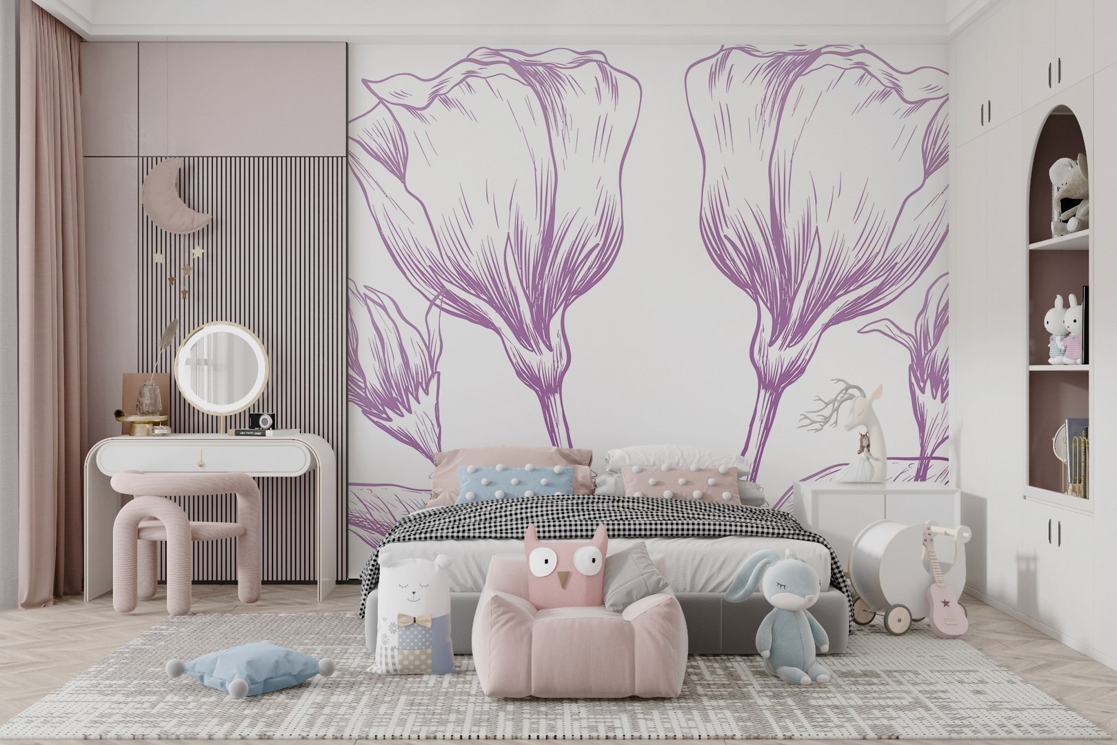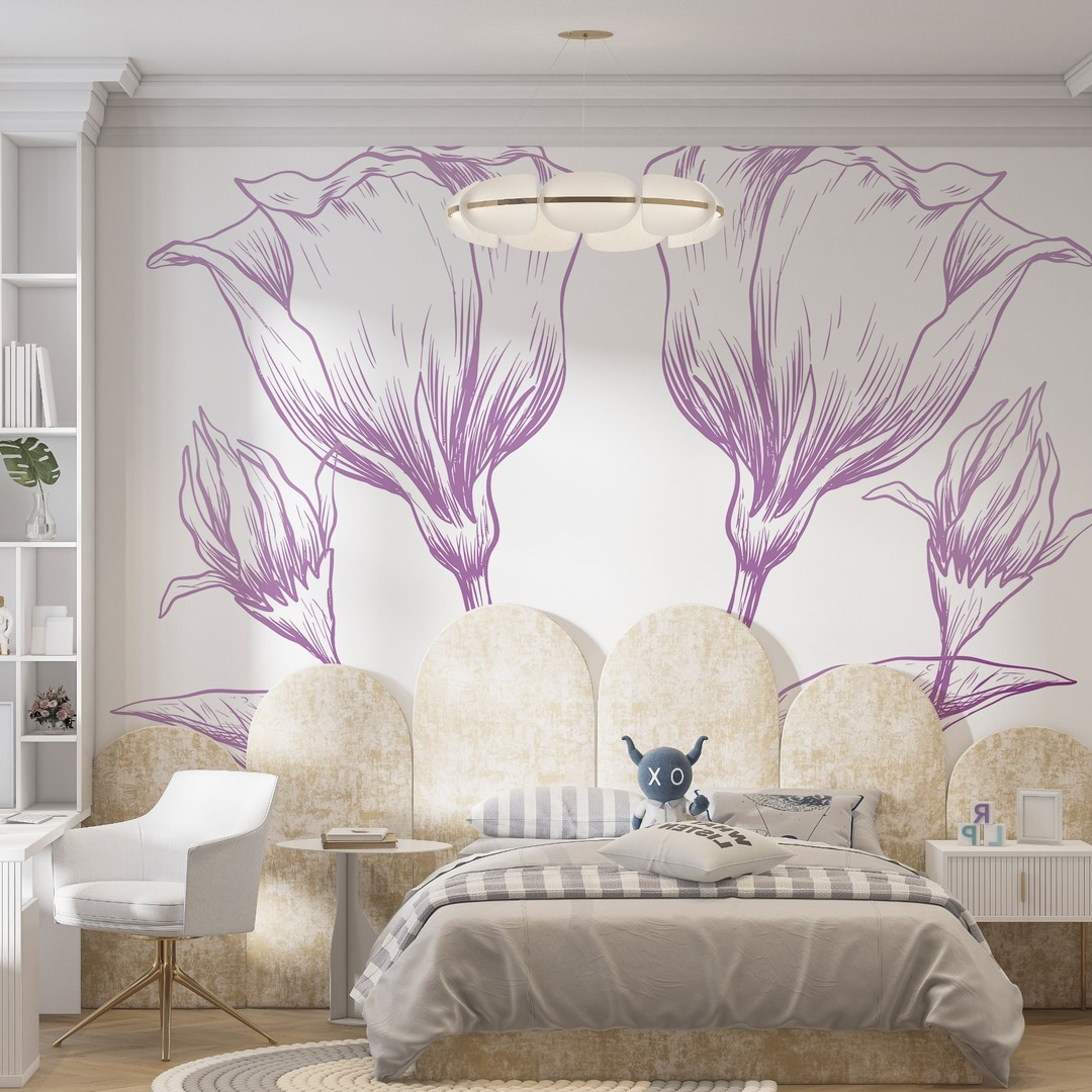 Fototapeten Zartes florales Liniendesign Fototapeten Zartes florales Liniendesign
