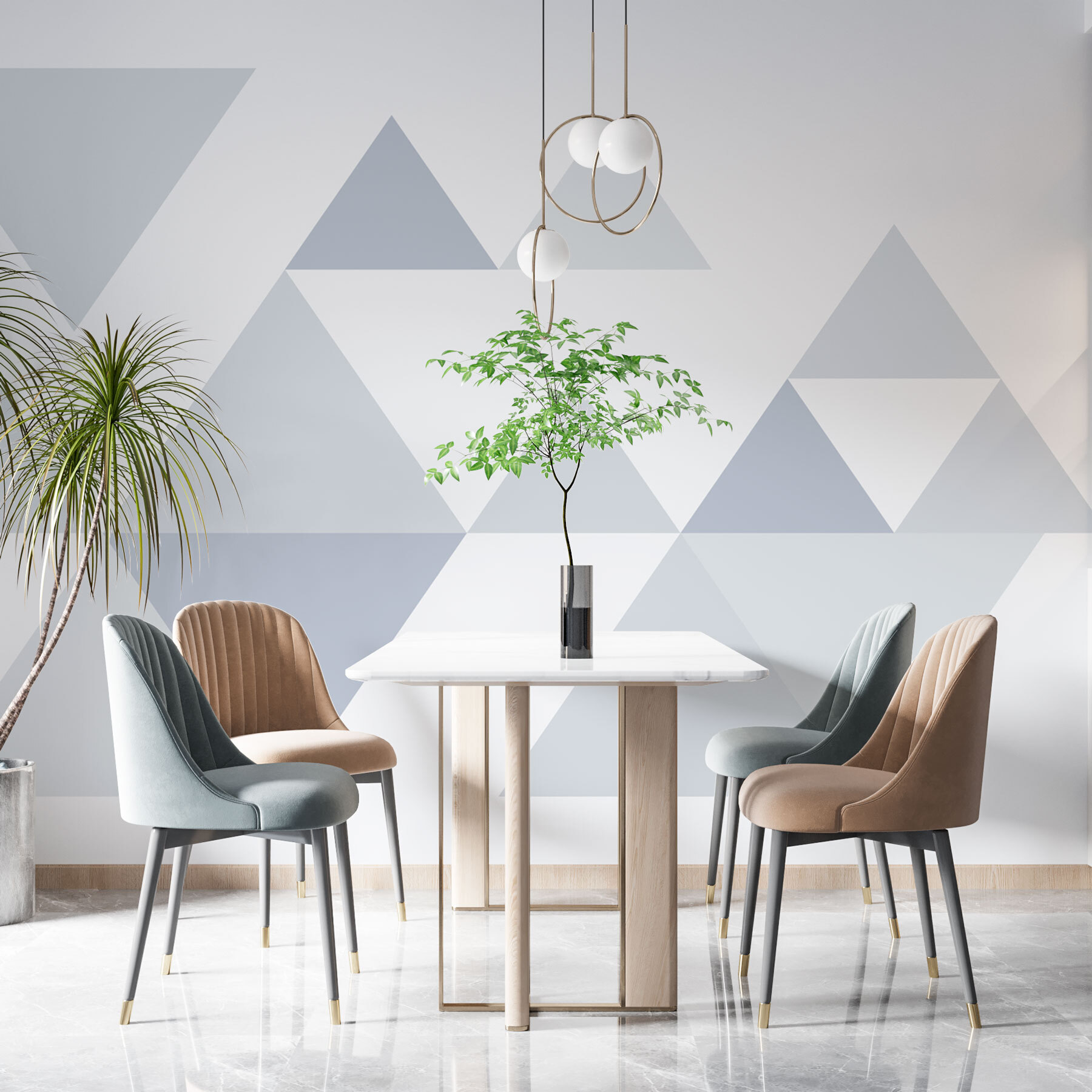 Beleben Sie Ihren Raum mit dieser auffälligen Fototapete, die eine lustige Reihe von Dreiecken zeigt, die über die Wand tanzen. Es ist wie eine geometrische Party, die nur darauf wartet, loszugehen! Stellen Sie sich vor, dass Sie morgens einen Blick auf diese Schönheit erhaschen – das wird Ihnen das Aufstehen definitiv erleichtern. Ganz gleich, ob Sie gerade einen Kaffee trinken, ein Buch lesen oder über den dritten Cupcake nachdenken, dieses Wandbild verleiht Ihnen einen verspielten Touch. Perfekt für ein Wohnzimmer, ein Büro oder wo auch immer Sie eine kreative Atmosphäre schaffen wollen. Verabschieden Sie sich von langweiligen Wänden und freuen Sie sich auf einen Hauch von Persönlichkeit!