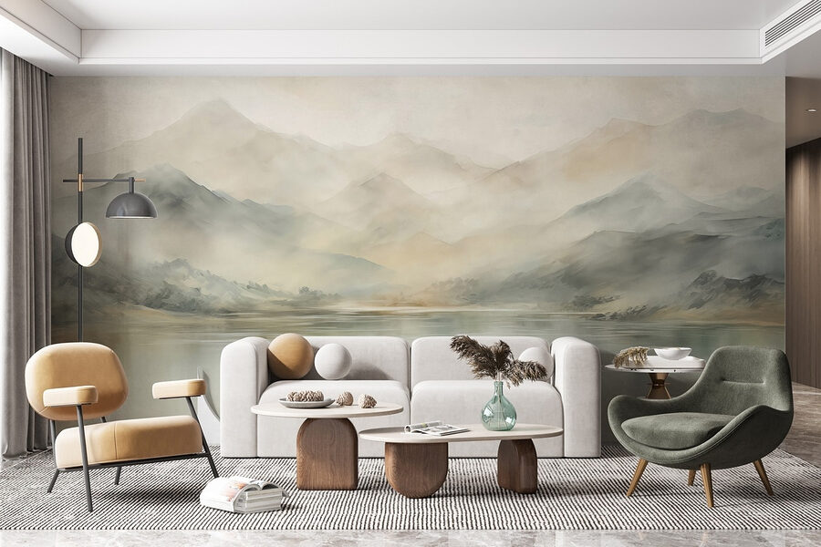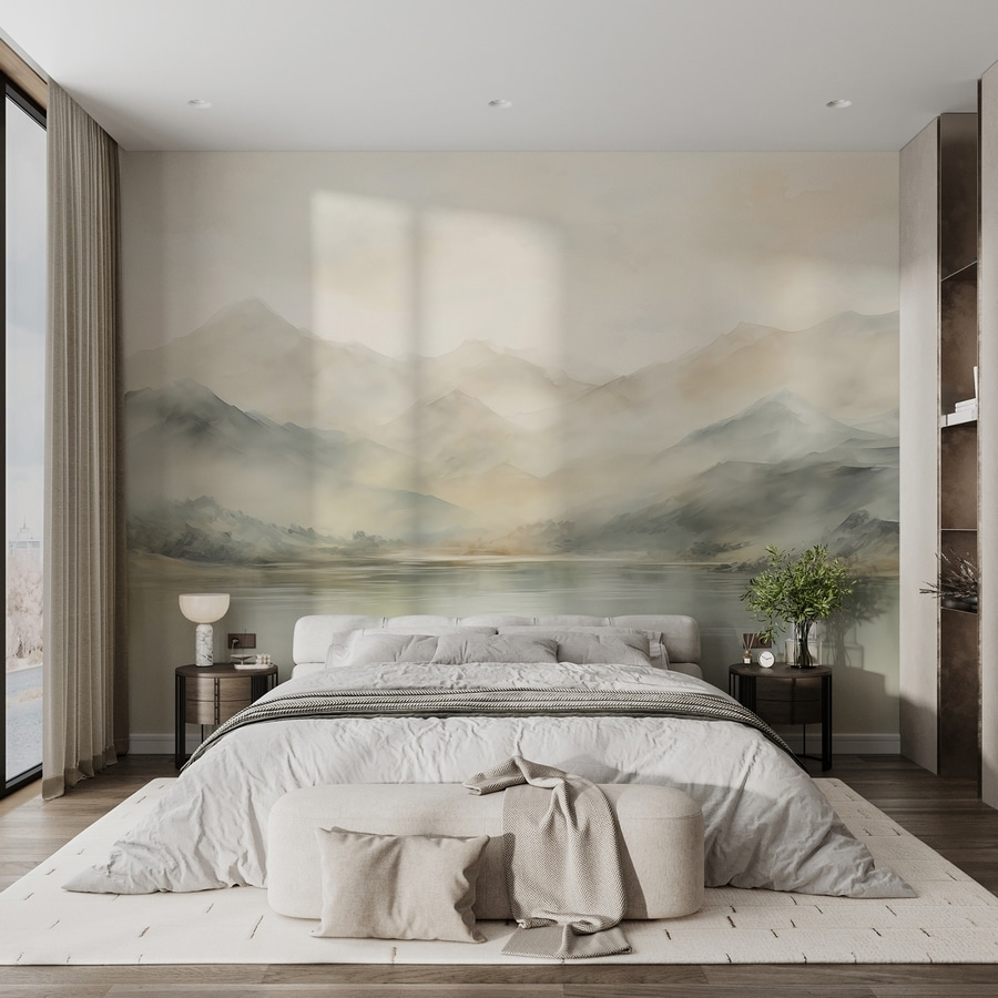 Verwandeln Sie jede Wand in einen ruhigen Zufluchtsort mit dieser atemberaubenden Fototapete mit Wasser und fernen Bergen. Stellen Sie sich vor, dass die sanften Farbtöne ineinander übergehen und eine ruhige, fast traumhafte Szene darstellen. Es ist wie ein Miniatururlaub direkt in Ihrem Wohnzimmer. Perfekt, um nach einem langen Tag abzuschalten oder um Tagträume über Wanderabenteuer zu wecken. Die sanften Striche erwecken ein Gefühl der Ruhe – ideal für eine gemütliche Leseecke oder sogar für eine lebhafte Dinnerparty. Stellen Sie sich vor, wie die Gespräche fließen, während diese Schönheit die perfekte Kulisse bildet. Es ist nicht nur Dekoration, sondern eine Einladung zum Entspannen.