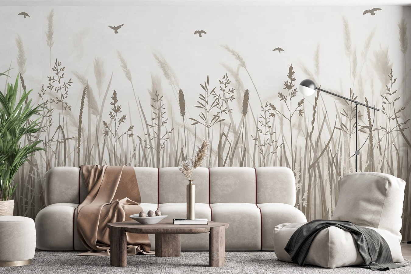 Verwandeln Sie eine triste Wand in eine heitere Zuflucht mit dem Wandbild “Field of Grass with Birds Flying”! Stellen Sie sich vor, Sie betreten eine sanfte Wiese, auf der sich hohes Gras sanft wiegt, fast so, als ob es Geheimnisse flüstern würde. Die subtilen Farbtöne und zarten Silhouetten schaffen eine ruhige Atmosphäre, die perfekt ist, um sich nach einem langen Tag zu entspannen. Es ist, als hätte man ein Stück Natur im Haus, nur ohne lästiges Ungeziefer. Ob in einer gemütlichen Ecke oder über einem Schreibtisch, dieses Wandbild bringt einen Hauch von Outdoor-Charme und Gelassenheit, dem man nur schwer widerstehen kann. Freunde werden es lieben, hier zu plaudern; sie könnten sogar denken, es sei ein Fenster zur freien Natur! Perfekt für Naturliebhaber oder alle, die einen Hauch von frischer Luft in ihrem Raum brauchen.