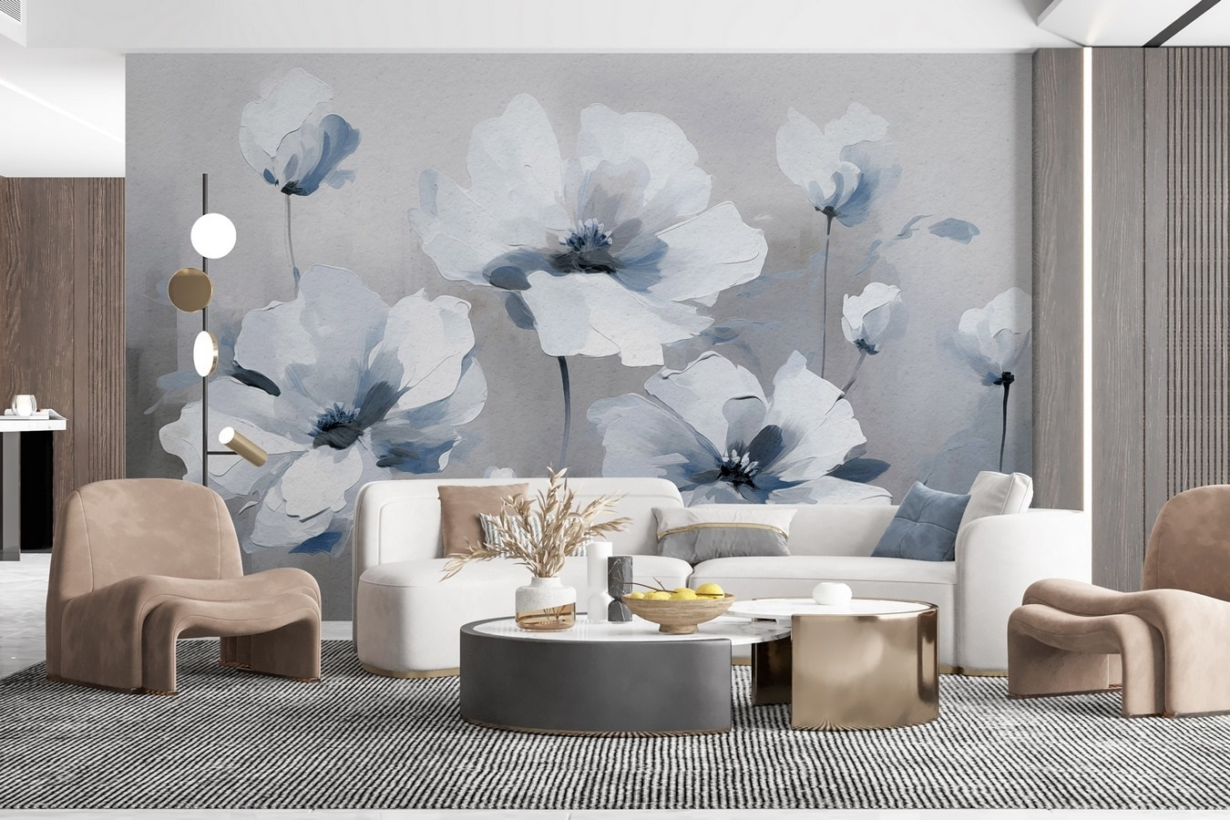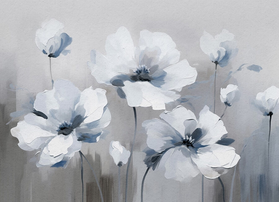 Verwandeln Sie Ihren Raum mit dieser atemberaubenden Fototapete mit weißen Blumen – ein Hauch von frischer Luft, der die Schönheit der Natur ins Haus bringt. Jede zarte Blume scheint sich in einer sanften Brise zu wiegen und ist in sanfte Grau- und Weißtöne getaucht – ein Hauch von Frieden! Stellen Sie sich dies in einer gemütlichen Leseecke oder einem hellen Flur vor; es ist, als hätten Sie einen Garten direkt an Ihrer Wand. Es kann zu Gesprächen anregen oder einfach nur dazu beitragen, die Seele nach einem langen Tag zu beruhigen. Und der Aquarell-Effekt verleiht dem Ganzen einen Hauch von Kunst – wer will das nicht? Der Charme dieses Wandbildes ist perfekt für alle, die ihre Einrichtung aufpeppen wollen, denn es wird sich in jedem Raum gut machen. Im Ernst, es könnte eine triste Wand in eine kleine Oase verwandeln. Stellen Sie sich vor, wie Sie in der Nähe einen Kaffee schlürfen und all diese entspannten, blumigen Gefühle in sich aufsaugen!