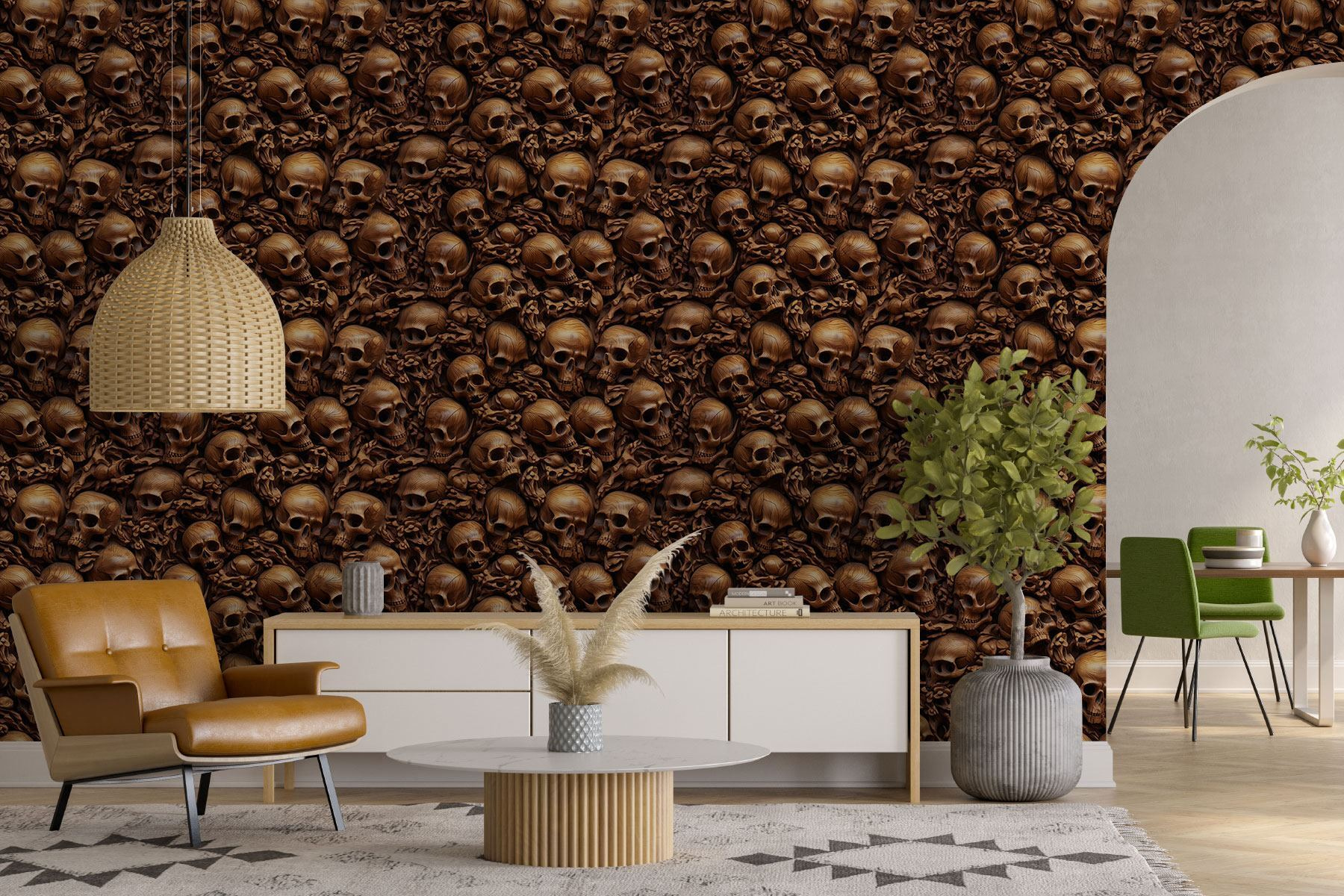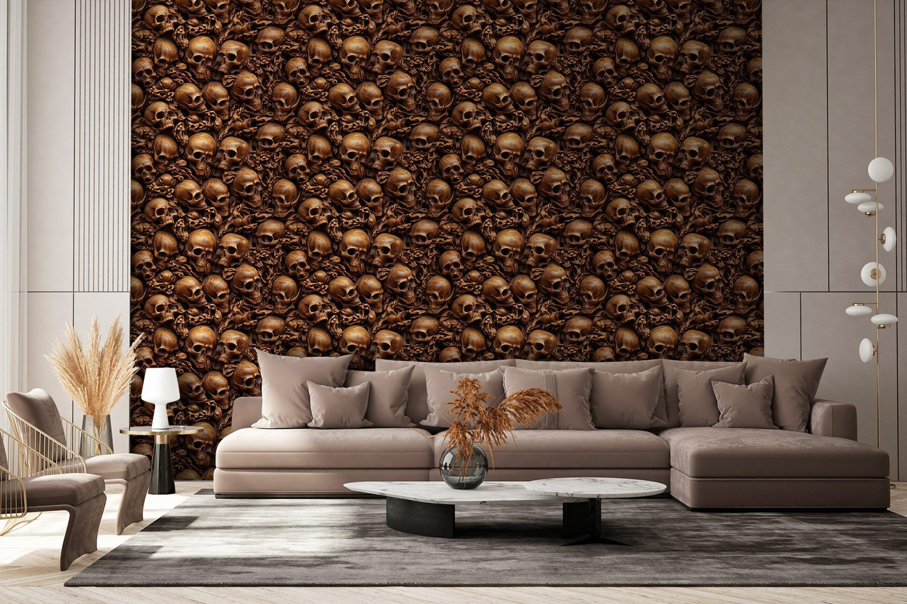 Treten Sie mit der Fototapete “Pile of Skulls” in eine Welt ein, in der die Kunst auf das Makabre trifft. Dieses auffällige Design ist nicht einfach nur eine Tapete, sondern ein gewagter Gesprächsanlass, der jedem Raum Charakter verleiht. Stellen Sie sich vor, Sie betreten Ihren Raum und werden von einem faszinierenden Meer aus detaillierten Schädeln begrüßt – perfekt für alle, die sich trauen, anders zu sein. Jeder Schädel erzählt seine eigene Geschichte und schafft eine geheimnisvolle und fesselnde Atmosphäre.