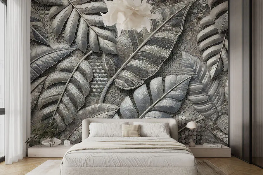 Verwandeln Sie Ihren Raum in einen heiteren Rückzugsort mit dieser Fototapete mit verschlungenen Blättern, die Ihnen das Gefühl geben, in ein tropisches Paradies einzutreten. Das Design lädt die Natur ins Haus ein und lässt jeden Tag ein bisschen luftiger erscheinen. Stellen Sie sich vor, Sie schlürfen Ihren Morgenkaffee, während Sie von beruhigenden Grün- und Erdtönen umgeben sind – es ist wie ein Mini-Urlaub direkt zu Hause. Und das einzigartige Aussehen dieses Wandbildes verleiht dem Ganzen einen raffinierten Touch, ohne nach Aufmerksamkeit zu schreien. Es sitzt einfach da und erinnert Sie stilvoll daran, dass die Natur Ihr bester Deko-Kumpel sein kann. Perfekt zur Auffrischung eines Wohnzimmers oder zur Erhöhung des Gemütlichkeitsfaktors in einem Schlafzimmer!