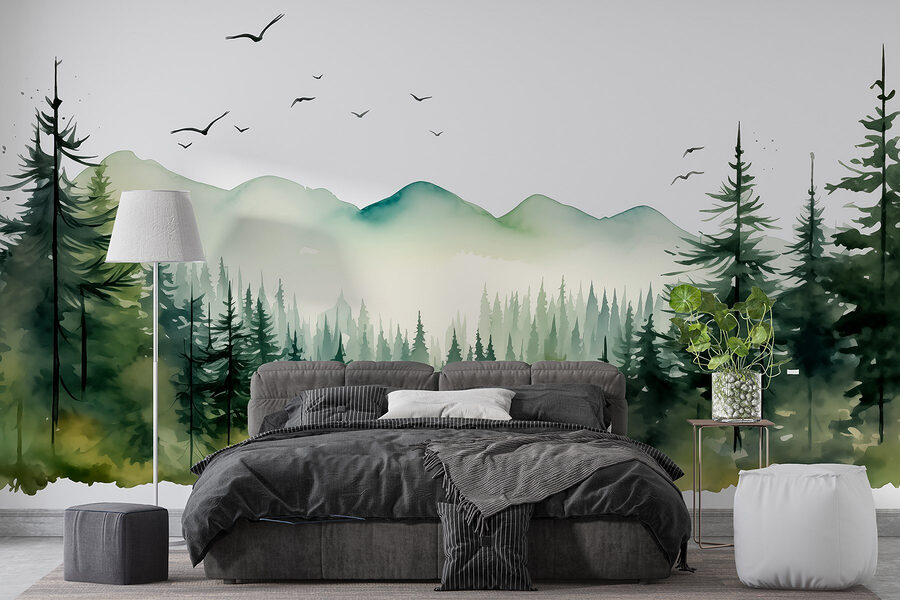 Verwandeln Sie jeden Raum in eine heitere Waldlandschaft mit dieser atemberaubenden Aquarellwandmalerei eines Waldes und von Bergen. Stellen Sie sich vor: Sie betreten Ihr Zimmer und BAM! Es fühlt sich an, als wären Sie in die Natur eingebettet, mit üppigem Grün und nebligem Blau, das sich wie eine kuschelige Decke um Sie legt. Jeder Blick bringt ein wenig frische Luft, vielleicht sogar das leise Zwitschern von Vögeln – na gut, vielleicht auch nicht, aber es fühlt sich auf jeden Fall so an. Dieses Wandbild eignet sich perfekt für ein Wohn- oder Schlafzimmer und strahlt Ruhe und Gelassenheit aus. Es ist, als hätte man ein Stückchen Natur direkt an der Wand, ganz ohne Wanderschuhe. Stellen Sie sich vor, wie Sie Ihren Morgenkaffee davor schlürfen – herrlich, oder? Also los, lassen Sie die Natur herein – Ihre Wände werden es Ihnen danken!