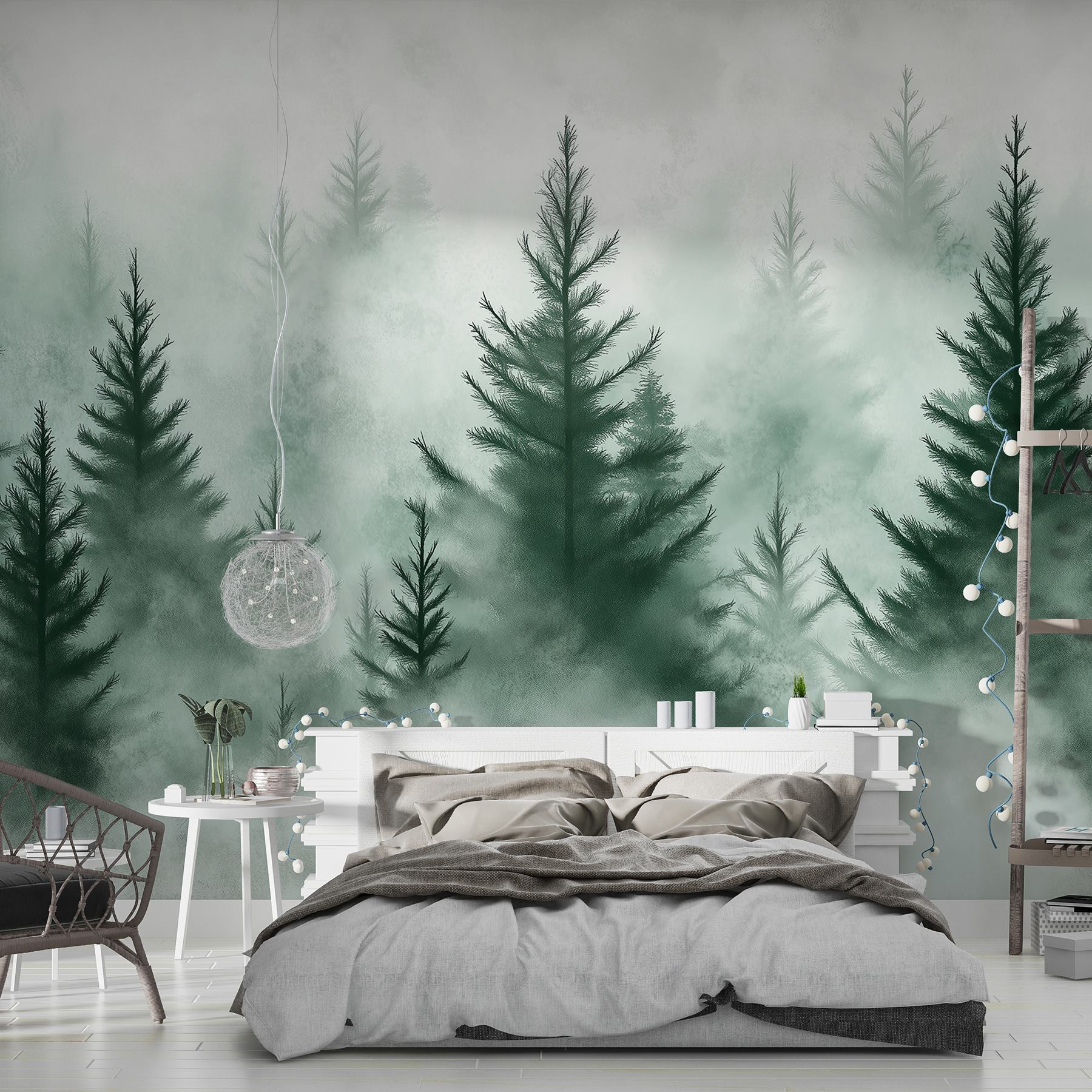Verwandeln Sie jeden Raum in einen ruhigen Zufluchtsort mit der Fototapete “Group of Trees in the Fog”. Stellen Sie sich vor, Sie wachen in der ruhigen Schönheit nebliger Wälder auf – es ist wie ein Rückzugsort in den Bergen, direkt in Ihrem Zuhause. Diese Fototapete zieht Sie mit ihren sanften Grüntönen und ihrer verträumten Ausstrahlung in ihren Bann und lässt jeden Raum offen und friedlich wirken. Es eignet sich perfekt für eine gemütliche Leseecke oder sogar für eine leere Wand, die nach Charakter schreit. Und wer liebt nicht einen Hauch von Natur, der nicht gegossen werden muss? Hängen Sie es einfach auf, lehnen Sie sich zurück und lassen Sie die Ruhe wie eine sanfte Brise auf sich wirken. Perfekt für Tagträumer und Naturliebhaber gleichermaßen!