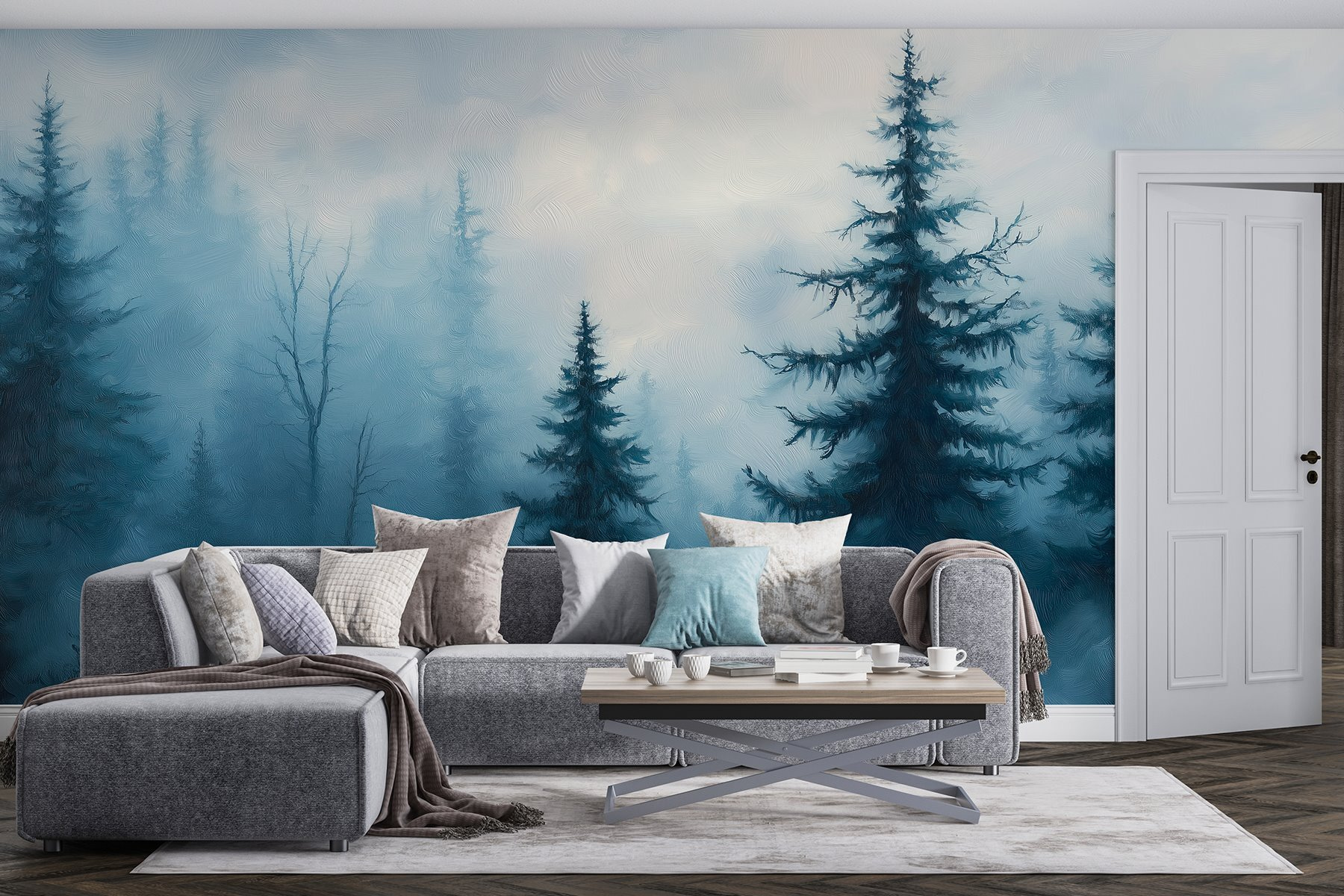 Verwandeln Sie Ihren Raum mit dem bezaubernden Charme der Fototapete “Nebliger Wald mit Bäumen”. Stellen Sie sich vor, Sie treten in einen nebligen Wald, in dem sich jeder Blick wie eine sanfte Flucht in die Natur anfühlt. Die sanften, gedämpften Farben hüllen Ihren Raum in eine beruhigende Stimmung – perfekt für eine gemütliche Leseecke oder einen ruhigen Rückzugsort im Schlafzimmer.