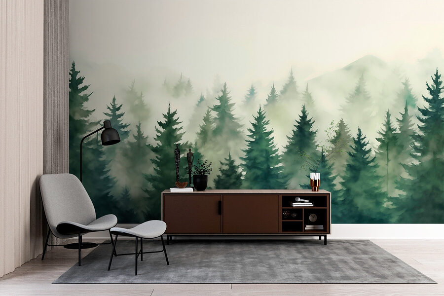 Verwandeln Sie jeden Raum in einen ruhigen Zufluchtsort mit dem bezaubernden Wandbild “Group of Trees in the Fog”. Dieses wunderschöne Wandbild fängt sanft das Mysterium eines nebligen Waldes ein und lädt Sie ein, in ein ruhiges Waldgebiet einzutreten, in dem die Sorgen einfach davonschweben. Stellen Sie sich vor, wie Sie Ihren Morgenkaffee schlürfen und dabei auf diese hohen, majestätischen Bäume blicken – es ist, als ob Sie ein Stück Natur ins Haus holen würden.