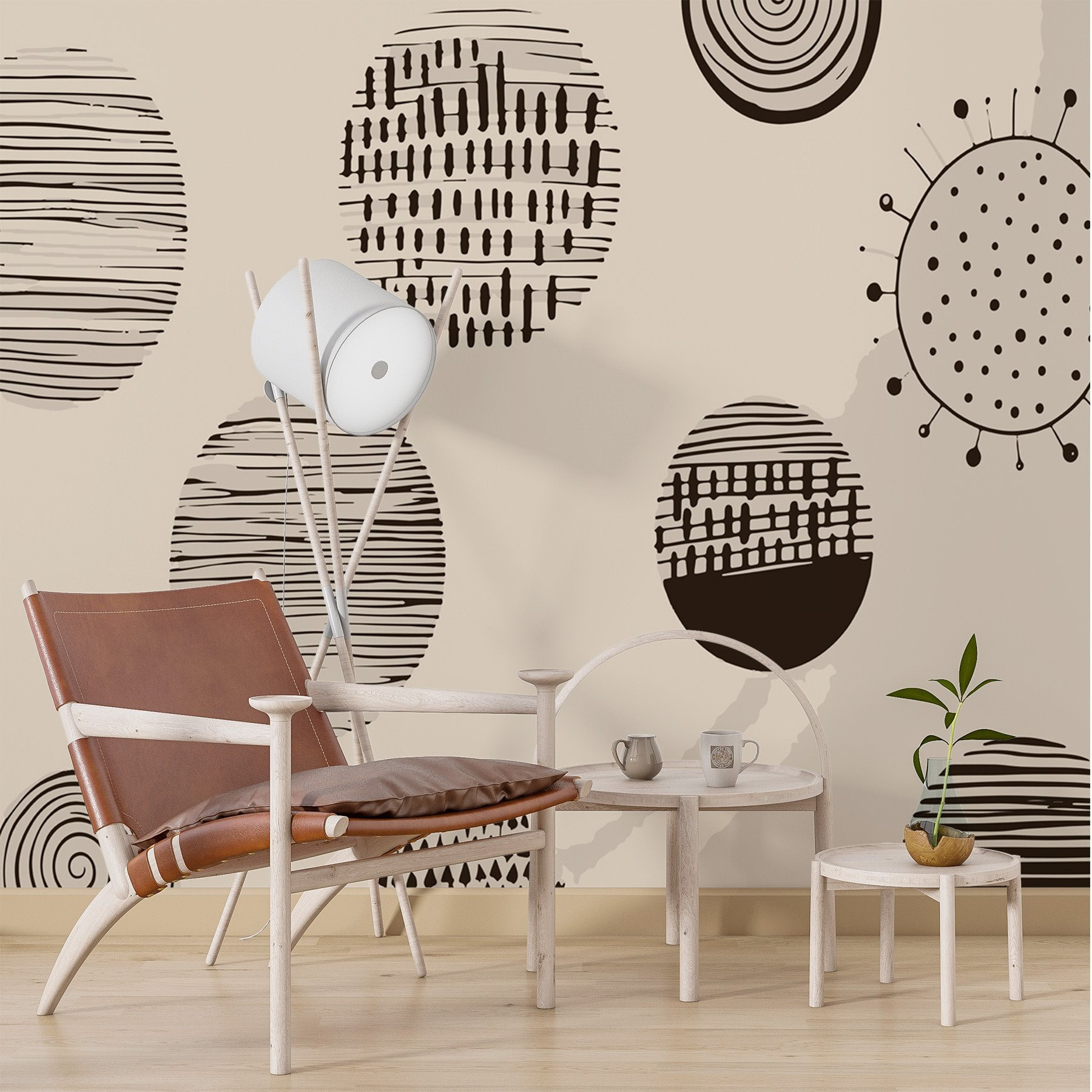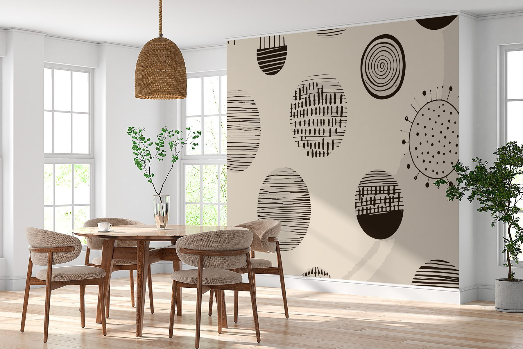 Verwandeln Sie jeden Raum mit dieser verspielten Fototapete, die eine lebendige Mischung aus Kreisen und Linien zeigt, die auf einem weichen, neutralen Hintergrund tanzen. Es ist wie eine kleine Party für Ihre Wände – keine Einladung nötig! Stellen Sie sich vor, Sie wachen mit diesem fröhlichen Anblick auf, und jedes Muster lädt Sie dazu ein, die Zeit zu vergessen und zu träumen. Perfekt für das Wohnzimmer, das Büro oder die Nische, die Sie schon lange verschönern wollten. Egal, ob Sie Kaffee trinken oder Freunde einladen, diese Fototapete regt zu Gesprächen an und bringt einen Hauch von Freude. Außerdem passt es zu so gut wie allem, so dass es keine Probleme mit der Garderobe gibt. Zeit, diesen Wänden etwas Persönlichkeit zu verleihen!