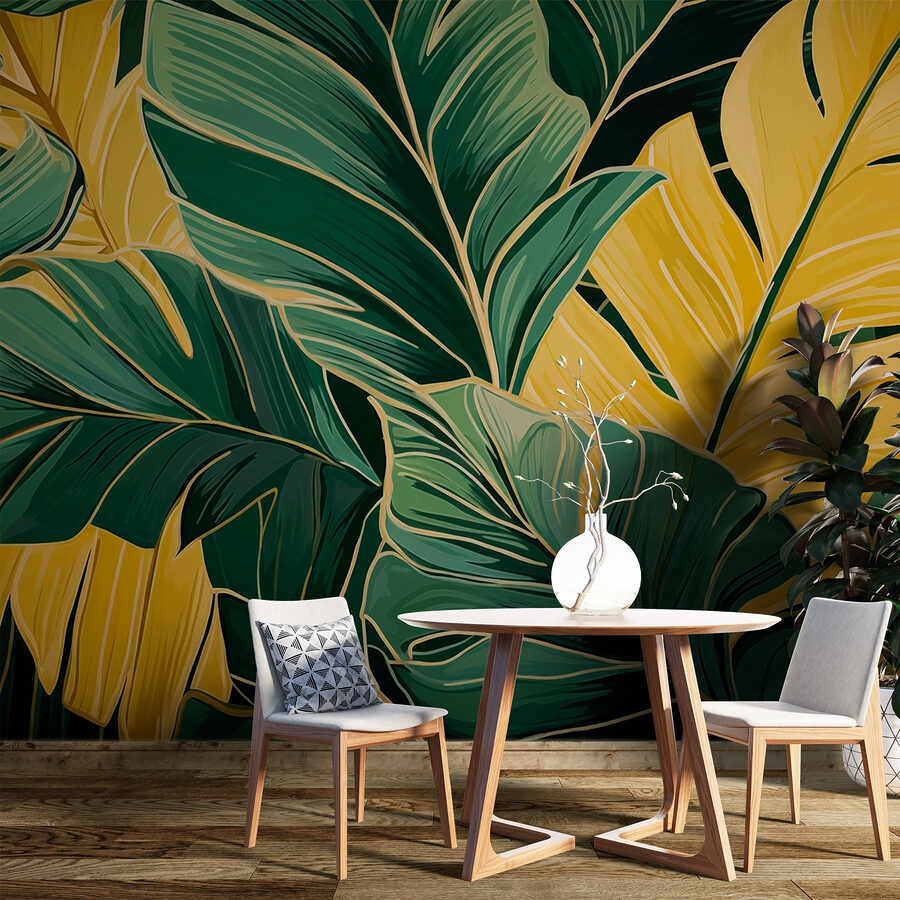 Holen Sie sich die Natur ins Haus mit diesem atemberaubenden Wandbild “Lebendiges Laub in Gelb und Grün”. Stellen Sie sich vor, Sie wachen jeden Tag in einer tropischen Oase direkt in Ihrem Wohnzimmer auf. Das kräftige Gelb und das satte Grün der Blätter leuchten, als wären sie gerade von der Sonne geküsst worden. Es ist wie ein Mini-Urlaub an Ihrer Wand! Ihre Freunde werden sich fragen, ob Sie einen geheimen Garten im Hinterhof haben.