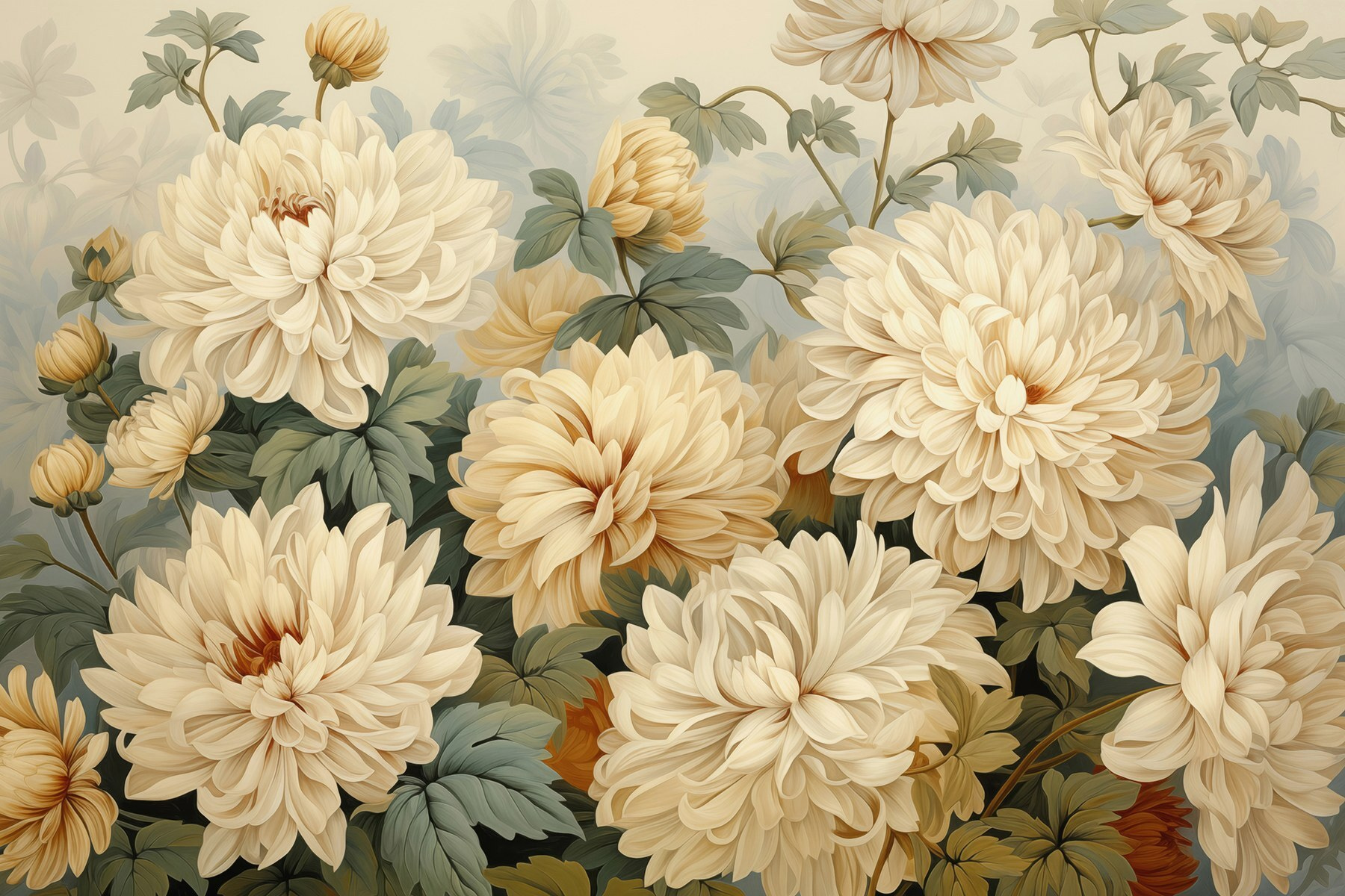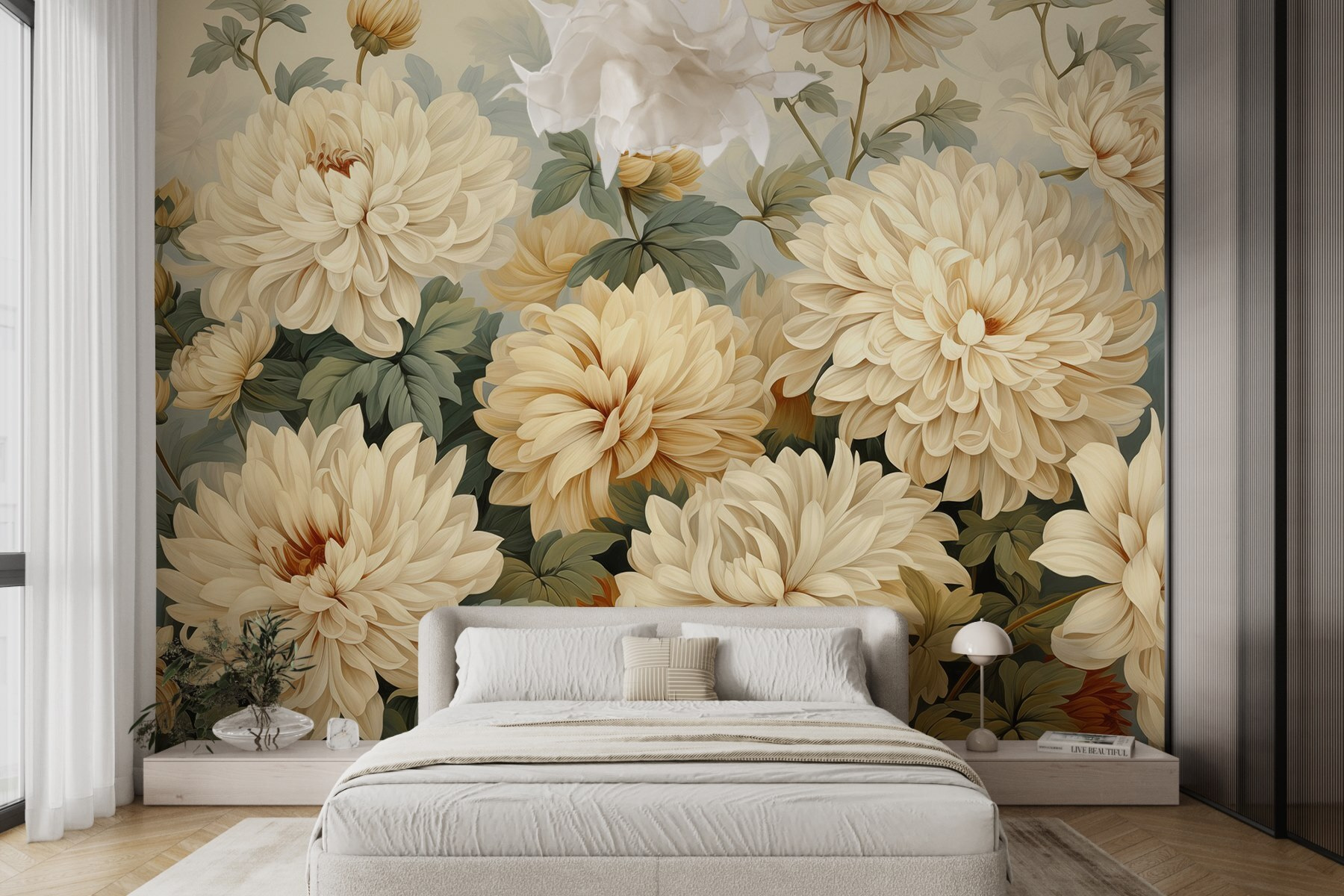 Ob in einer gemütlichen Ecke oder in einem geräumigen Wohnbereich, dieses Wandbild verleiht einen Hauch von Charme, ohne nach Aufmerksamkeit zu schreien. Es ist wie eine florale Umarmung für Ihre Wände, die zu Wärme und Komfort einlädt. Jeder Blick fühlt sich an wie ein Spaziergang durch einen ruhigen Garten, in dem die Sorgen zu verschwinden scheinen. Und wer würde sich das nicht wünschen?