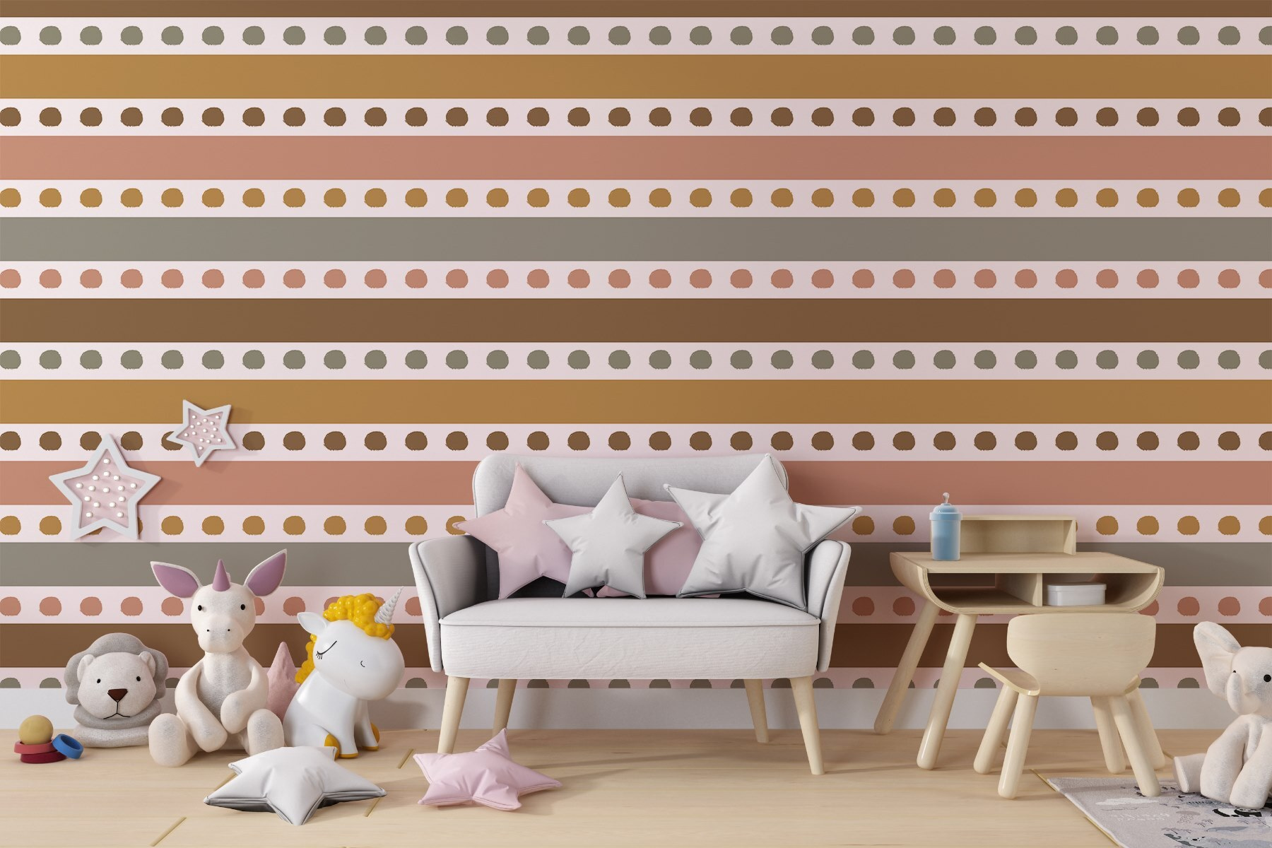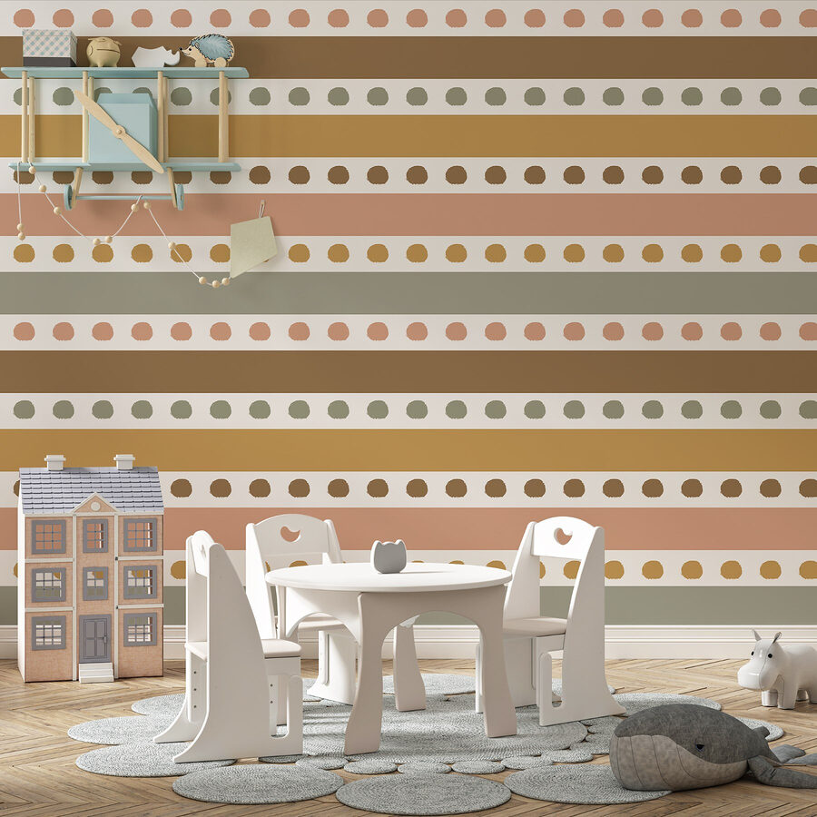 Verschönern Sie Ihren Raum mit dem Wandbild “Fototapeten Pattern of Colorful Dots”! Dieses verspielte Design zeigt eine Symphonie von Punkten in sanften, erdigen Farbtönen – stellen Sie sich eine gemütliche, einladende Atmosphäre vor, die perfekt für entspannte Zusammenkünfte oder den Rückzug mit einem Buch ist. Jeder Streifen verbreitet eine unbeschwerte Stimmung, die an ein sonniges Picknick erinnert. Stellen Sie sich vor, jemand kommt herein, lächelt über die fröhlichen Punkte und fühlt sich plötzlich inspiriert, eine Teeparty zu veranstalten – oder vielleicht einfach nur ein Stück Kuchen auf der Couch zu genießen. Es ist wie eine warme Umarmung für Ihre Wände, die jedem Raum mühelos Leben einhaucht. Es wird Ihnen schwer fallen, diese Punkte nicht jeden Tag zu bewundern!