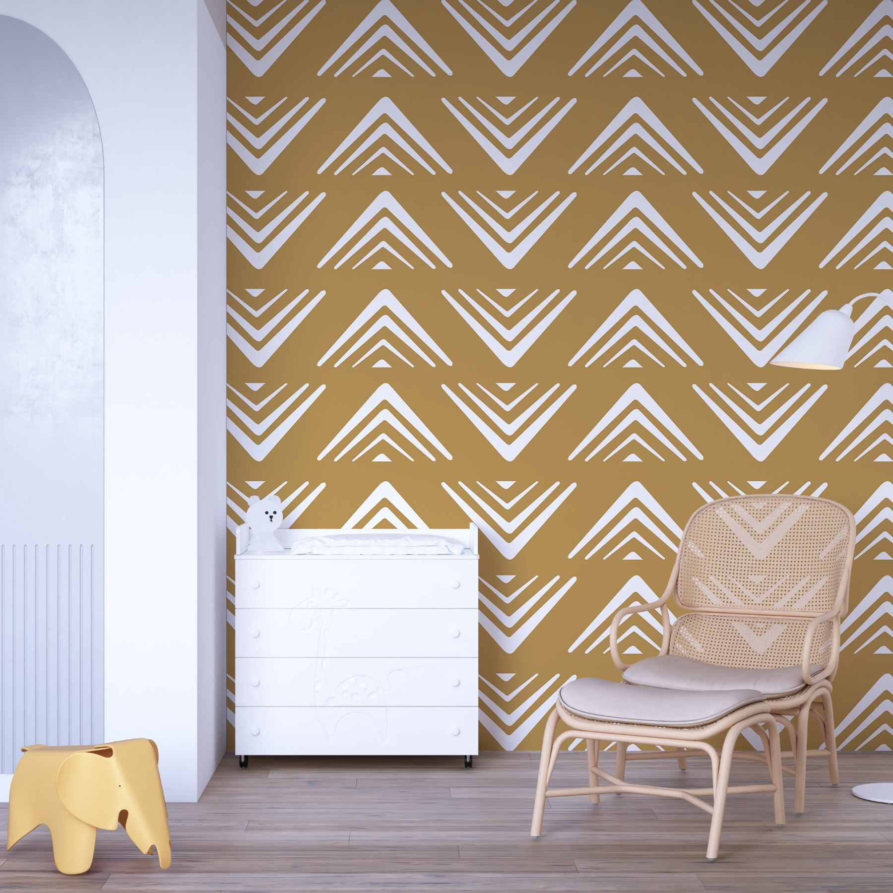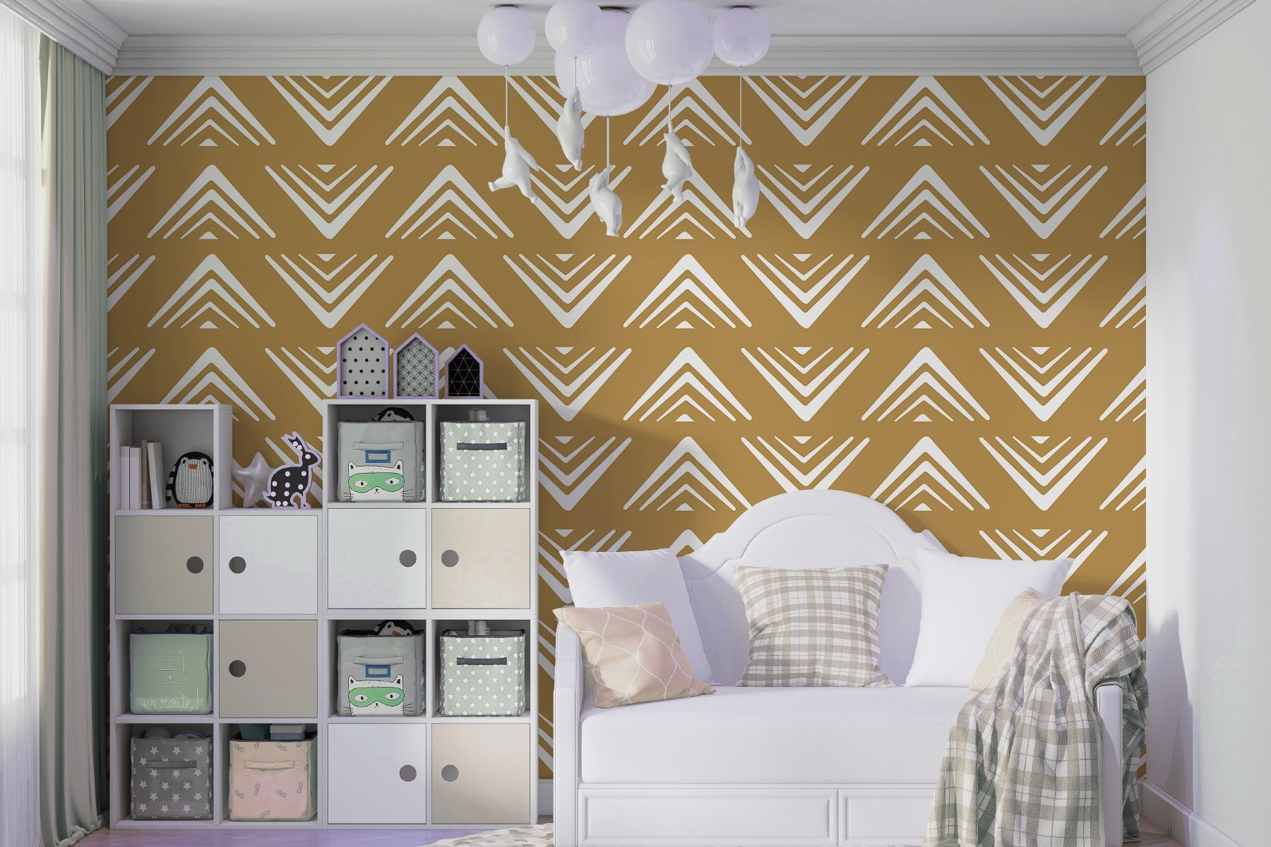 Verwandeln Sie jeden Raum mit dieser lebhaften Fototapete mit einem verspielten Muster aus Dreiecken, die über einen sonnengelben Hintergrund tanzen. Es ist wie eine Explosion der Freude an den Wänden, die sofort die Stimmung aufhellt. Stellen Sie sich vor, Sie trinken einen Kaffee in einem Raum, der sich lebendig und voller Energie anfühlt – was für eine Art, den Tag zu beginnen! Außerdem verleihen die klaren Linien und geometrischen Formen dem Bild einen modernen Touch, so dass es sich sowohl für gemütliche Ecken als auch für schicke Wohnbereiche eignet. Es ist die Art von Wandbild, die zu Gesprächen anregt, die Gäste zum Lächeln bringt und vielleicht sogar zu improvisierten Tanzbewegungen inspiriert. Ein Spritzer Spaß, oder?