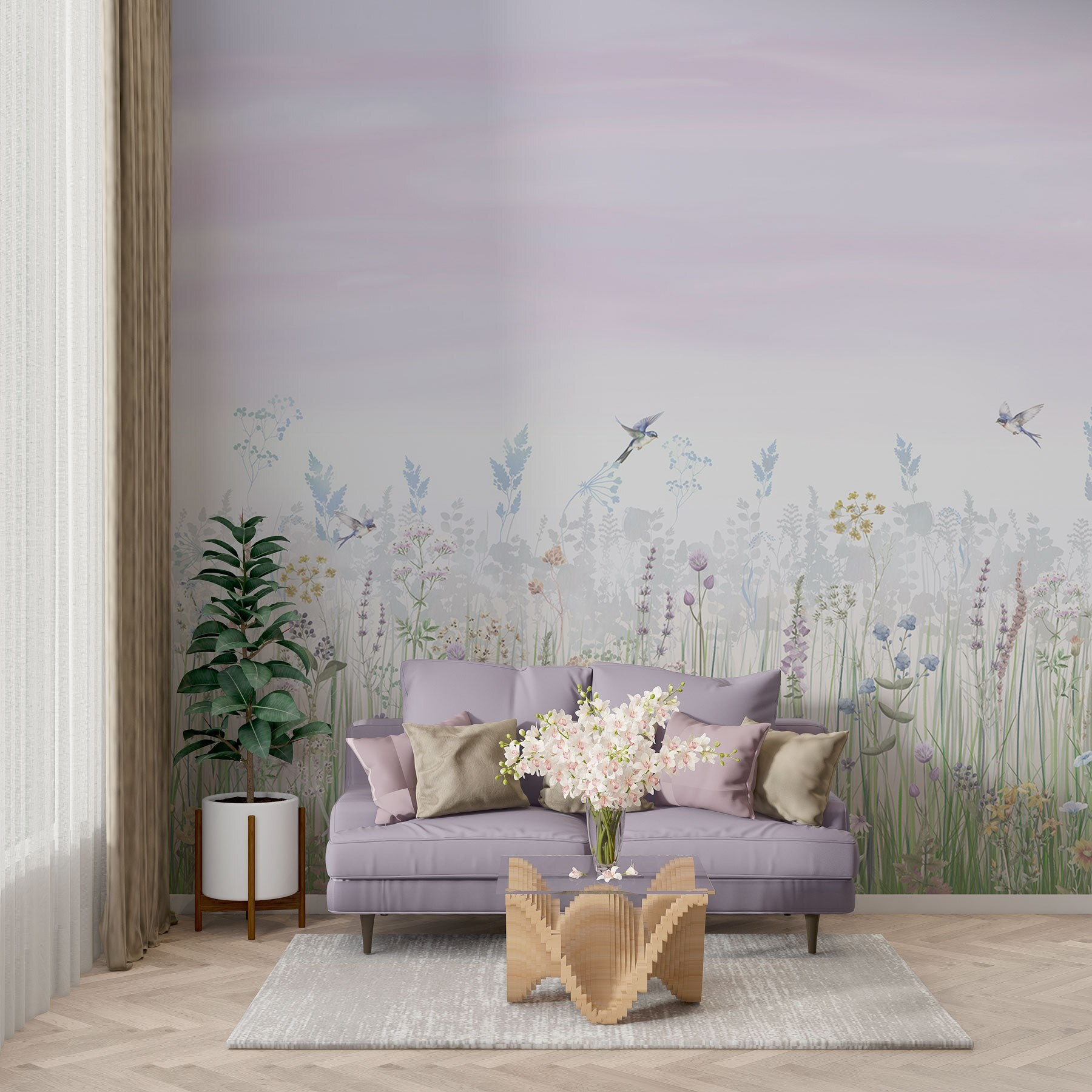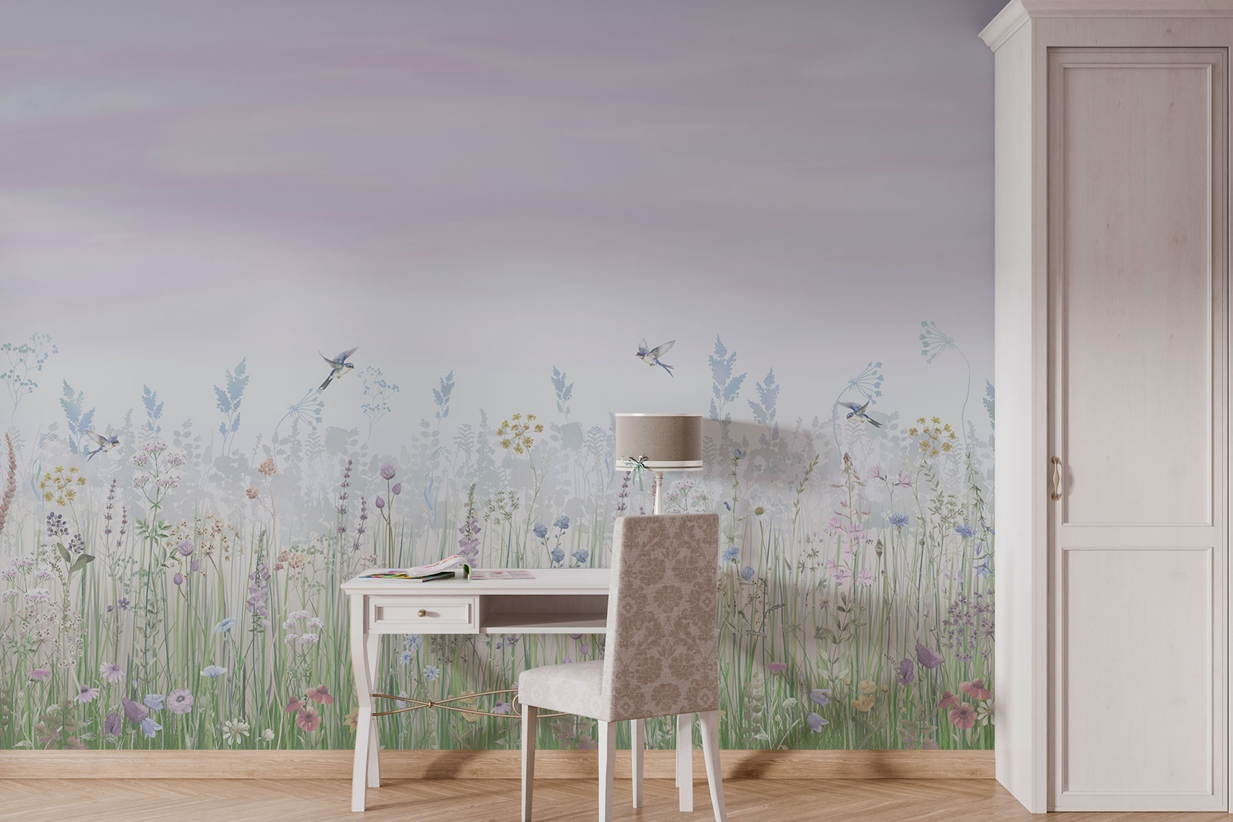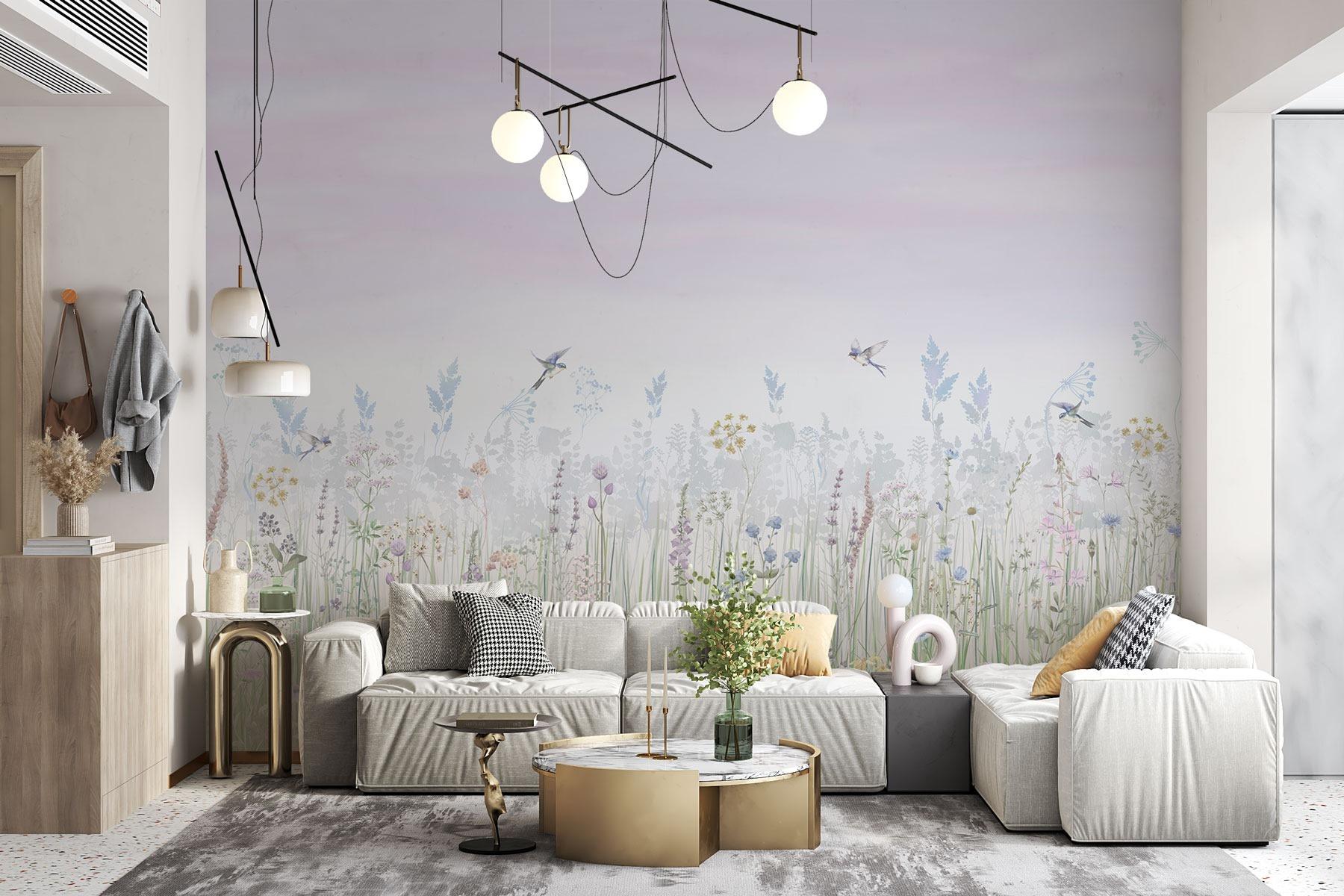 Verwandeln Sie jeden Raum in einen ruhigen Zufluchtsort mit der Fototapete “Field of Flowers and Birds”. Stellen Sie sich vor, Sie sind von einer verträumten Aquarelllandschaft umgeben, in der sanfte Farbtöne wie eine leichte Brise über die Wand tanzen. Die zarten Blumen und verspielten Vögel laden zu Tagträumen und ruhigen Gedanken ein – die perfekte Kulisse für die morgendlichen Kaffeerituale oder gemütliche Leseecken. Es ist, als würde man sich ein Stück Natur ins Haus holen – nur ohne Pollen und Insekten! Ob Sie sich nach einem langen Tag entspannen oder Freunde empfangen, dieses Wandbild hüllt Ihren Raum in Wärme und Gelassenheit. Ein Hauch von Laune für jedes Zuhause, der die Stimmung aufhellt wie die erste Blüte des Frühlings.