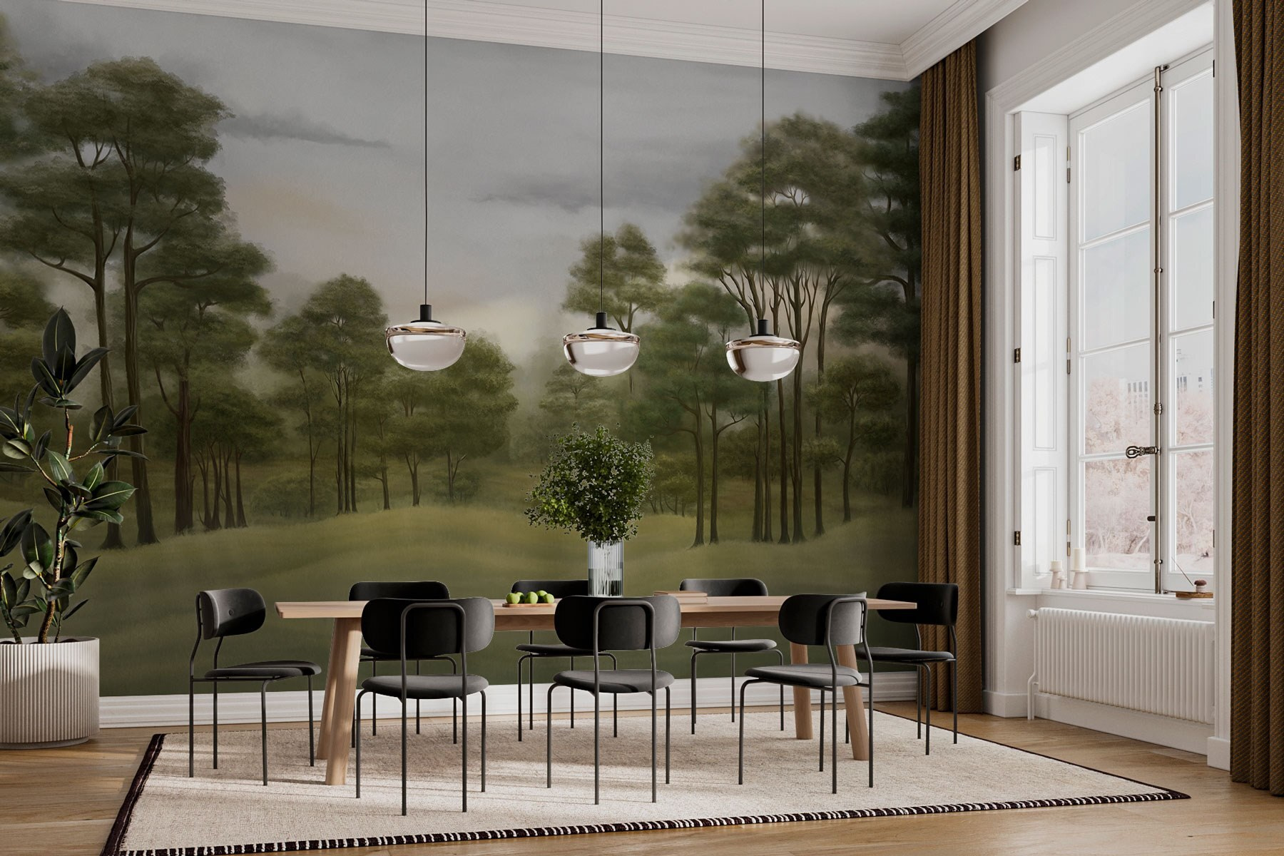 Verwandeln Sie jeden Raum mit dieser atemberaubenden Fototapete “Landschaft mit Bäumen und Gras”. Stellen Sie sich vor, Sie treten in einen ruhigen Wald, in dem sich hohe Bäume sanft wiegen und weiches Gras Sie einlädt, Ihre Schuhe auszuziehen. Es ist, als ob man sich ein Stück Natur ins Haus holt, nur ohne die Ungeziefer! Diese Fototapete eignet sich perfekt, um eine gemütliche Ecke oder einen ruhigen Hintergrund zu schaffen, und hüllt Ihren Raum in eine erdige Atmosphäre. Egal, ob Sie einen Kaffee trinken oder eine Wohlfühlserie schauen, diese Fototapete sorgt für einen erfrischenden Touch. Wer hätte gedacht, dass die Natur so perfekt an Ihre Wand passt?