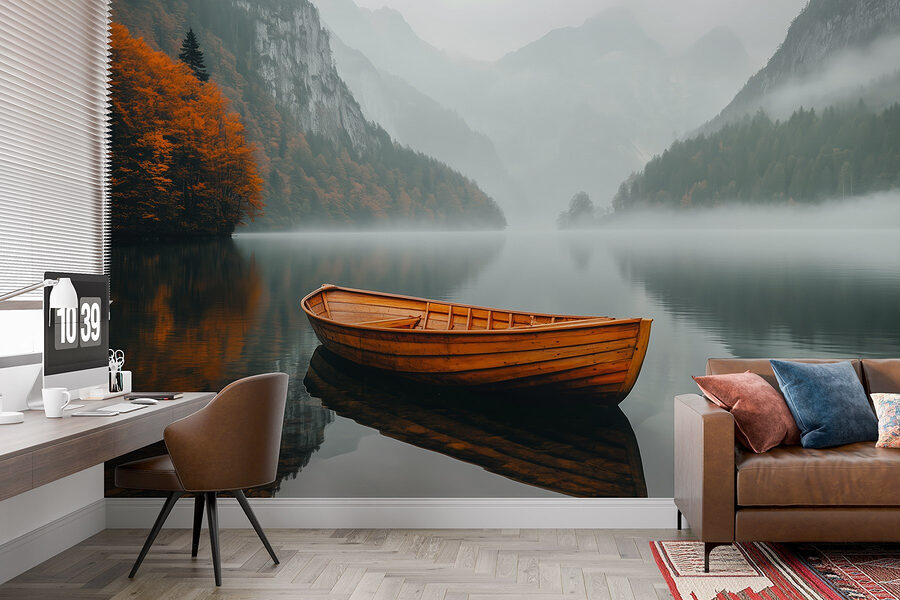 Verwandeln Sie jeden Raum in ein Stück Ruhe mit der Fototapete “Boat on a Lake”. Dieses atemberaubende Kunstwerk fängt die heitere Schönheit eines nebligen Sees ein, auf dem ein sanftes Holzboot mühelos zu treiben scheint und ein Echo der Ruhe ausstrahlt. Stellen Sie sich vor, Sie betreten Ihren Raum und spüren diese friedliche Stimmung – wie ein täglicher Mini-Urlaub! Die leuchtenden Orangen der Bäume heben sich von dem sanften Nebel ab und sind eine wahre Augenweide. Es ist wie eine Erinnerung daran, innezuhalten, tief durchzuatmen und vielleicht sogar den inneren Entdecker zu finden. Perfekt für alle, die die Pracht der Natur ohne Schlamm und Mückenspray erleben wollen!