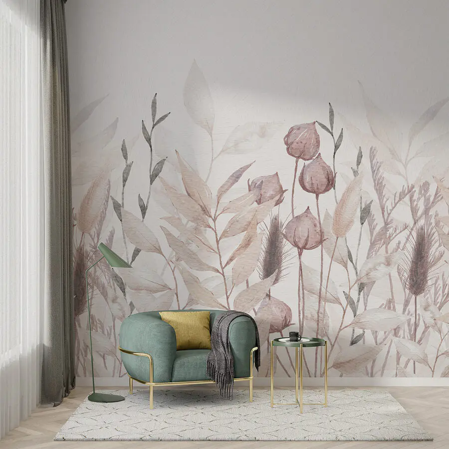 Verwandeln Sie jeden Raum in einen ruhigen Zufluchtsort mit dieser bezaubernden Fototapete mit Pflanzen und Blättern. Stellen Sie sich vor, Sie betreten einen Raum, der sich wie ein friedlicher Garten anfühlt – weiche Aquarelltöne fügen sich harmonisch ein und laden die Natur direkt in Ihr Zuhause ein. Diese Fototapete strahlt Entspannung aus und verwandelt eine schlichte Wand in ein Kunstwerk. Stellen Sie sich vor, Sie trinken einen Tee und genießen die ruhige Atmosphäre, oder Sie empfangen Freunde, die die elegante botanische Schönheit einfach bewundern müssen. Sie eignet sich perfekt für Wohn- und Schlafzimmer oder sogar für eine gemütliche Ecke und verleiht einen Hauch von Ruhe und Wärme. Glauben Sie mir, wer würde sich nicht gerne ein kleines Stück Natur ins Haus holen?
