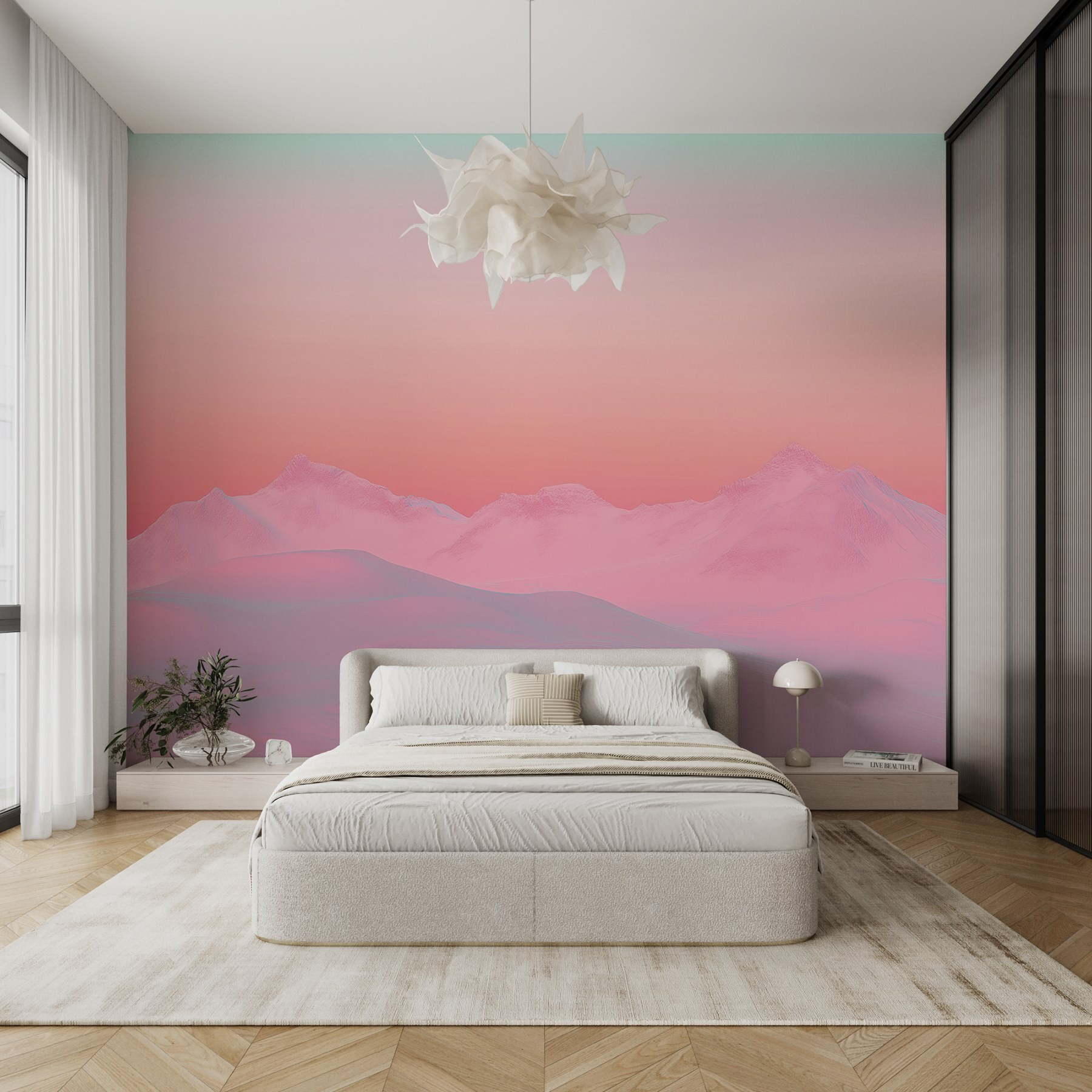 Verwandeln Sie Ihren Raum mit dem verträumten Wandbild “Pink and Blue Sky Over a Snowy Mountain Range”. Stellen Sie sich vor, Sie wachen mit dieser sanften Mischung aus Rosa und Azurblau auf, die eine ruhige Kulisse schafft und den Stress vergessen lässt. Es fühlt sich an wie eine sanfte Umarmung der Natur – perfekt für die kühlen Morgenstunden mit einer gemütlichen Tasse Kaffee in der Hand. Ganz gleich, ob Sie sich auf der Couch entspannen oder nach einem langen Tag die Seele baumeln lassen, dieses Wandbild strahlt Ruhe und Gelassenheit aus. Es ist nicht nur Dekoration, es ist eine Flucht, ein Miniurlaub in Pastellfarben, der zum Träumen und zur Ruhe in jedem Raum einlädt. Wer würde sich das nicht wünschen?
