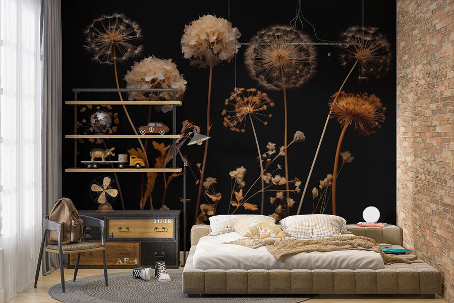 Verwandeln Sie jeden Raum in einen skurrilen Garten mit dieser atemberaubenden Fototapete, auf der Pusteblumen auf ihren Stängeln tanzen. Die sanften Farbtöne und lebendigen Details ziehen Sie in eine Welt, in der die Wünsche mit jeder Brise fliegen. Stellen Sie sich vor, Sie trinken einen Tee, schauen auf dieses Wandbild und träumen von Sonnenschein und Picknicks. Es ist, als ob man sich einen Hauch von Natur ins Haus holt, ohne Pollenallergien zu bekommen. Es eignet sich perfekt, um eine gemütliche Ecke aufzuhellen oder einen lebendigen Raum zu verschönern, und bringt Wärme und ein bisschen Magie in Ihr Zuhause. Wer möchte nicht ein bisschen Wildblumencharme an seiner Wand haben?