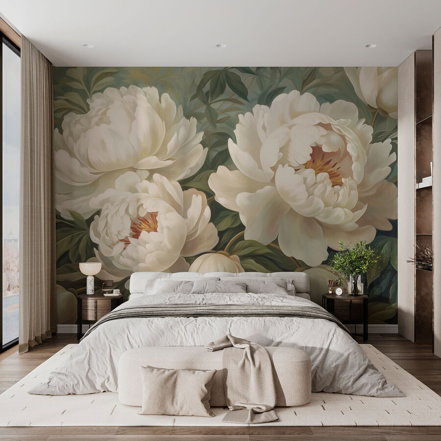 Verwandeln Sie jeden Raum mit diesem bezaubernden Wandbild, das üppige Blüten mit zarten weißen Blütenblättern zeigt. Stellen Sie sich vor, Sie betreten einen Raum, in dem zarte Pfingstrosen das Licht einfangen und den ganzen Ort in einen ruhigen Garten verwandeln. Perfekt für die Tage, an denen die Welt draußen ein bisschen zu chaotisch ist – einfach anschauen und durchatmen.