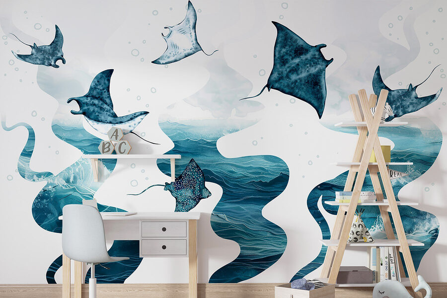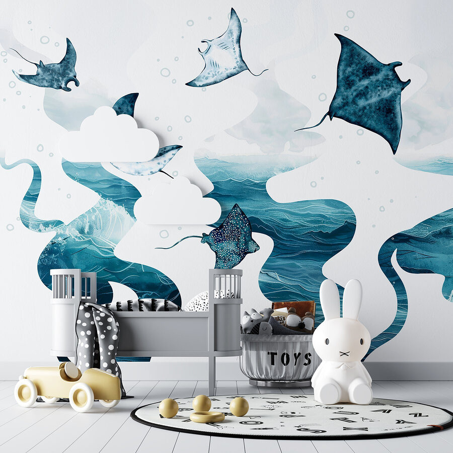 Verwandeln Sie jeden Raum in eine heitere Unterwasserwelt mit dieser atemberaubenden Fototapete, die Rochen zeigt, die anmutig durch das Wasser gleiten. Stellen Sie sich vor, Sie betreten einen Raum, in dem die beruhigenden Blautöne eine ruhige Atmosphäre schaffen, fast wie ein Mini-Urlaub direkt zu Hause. Der mühelose Fluss des Designs lässt Sie von Meereswellen und sanften Brisen träumen und macht es perfekt für eine Strandecke oder ein entspanntes Wohnzimmer. Und wer liebt keine Stachelrochen? Sie sind wie die sanften Riesen des Meeres und bringen einen Hauch von Wunder und Persönlichkeit an Ihre Wände. Es ist nicht nur Dekoration, sondern eine tägliche Erinnerung an die Schönheit der Natur, die auf subtile Weise zu Entspannung und Tagträumen vom Meer anregt. Tauchen Sie in dieses Wandbild ein und lassen Sie Ihrer Fantasie freien Lauf!