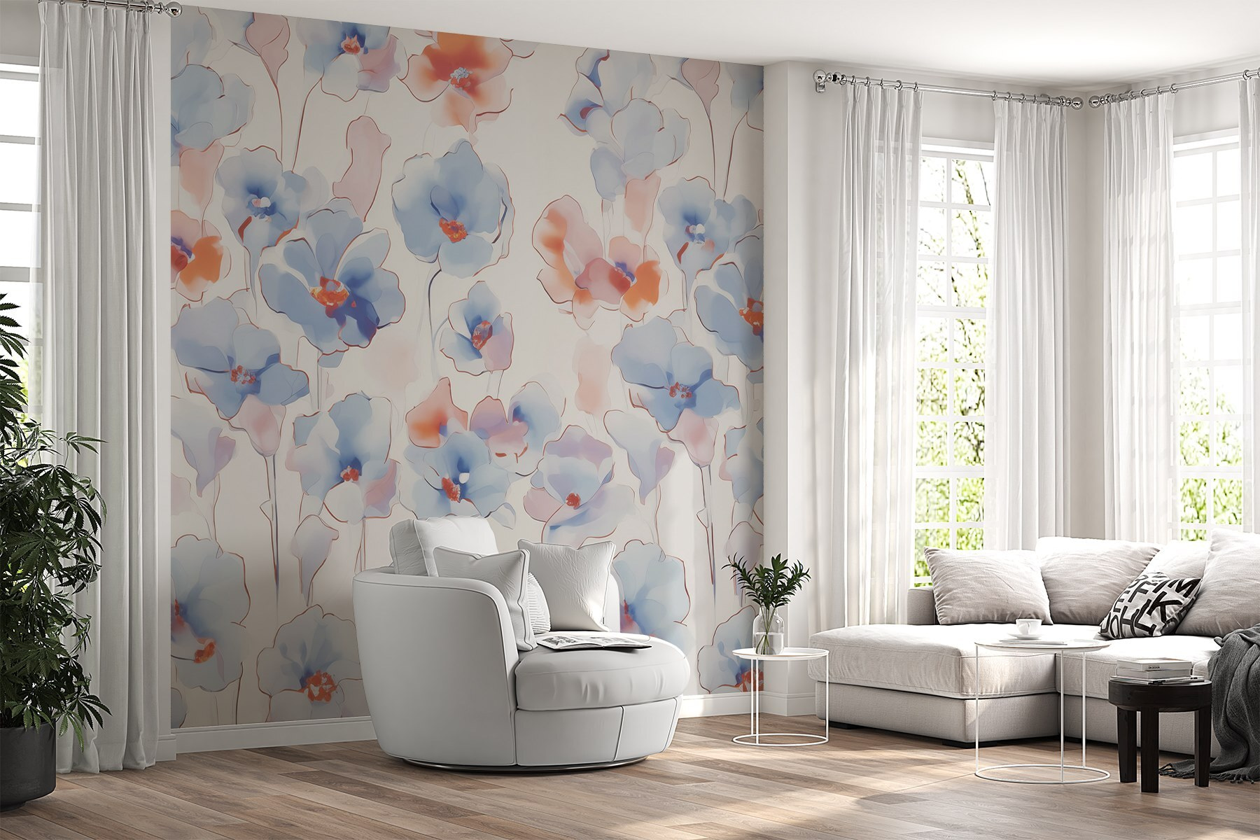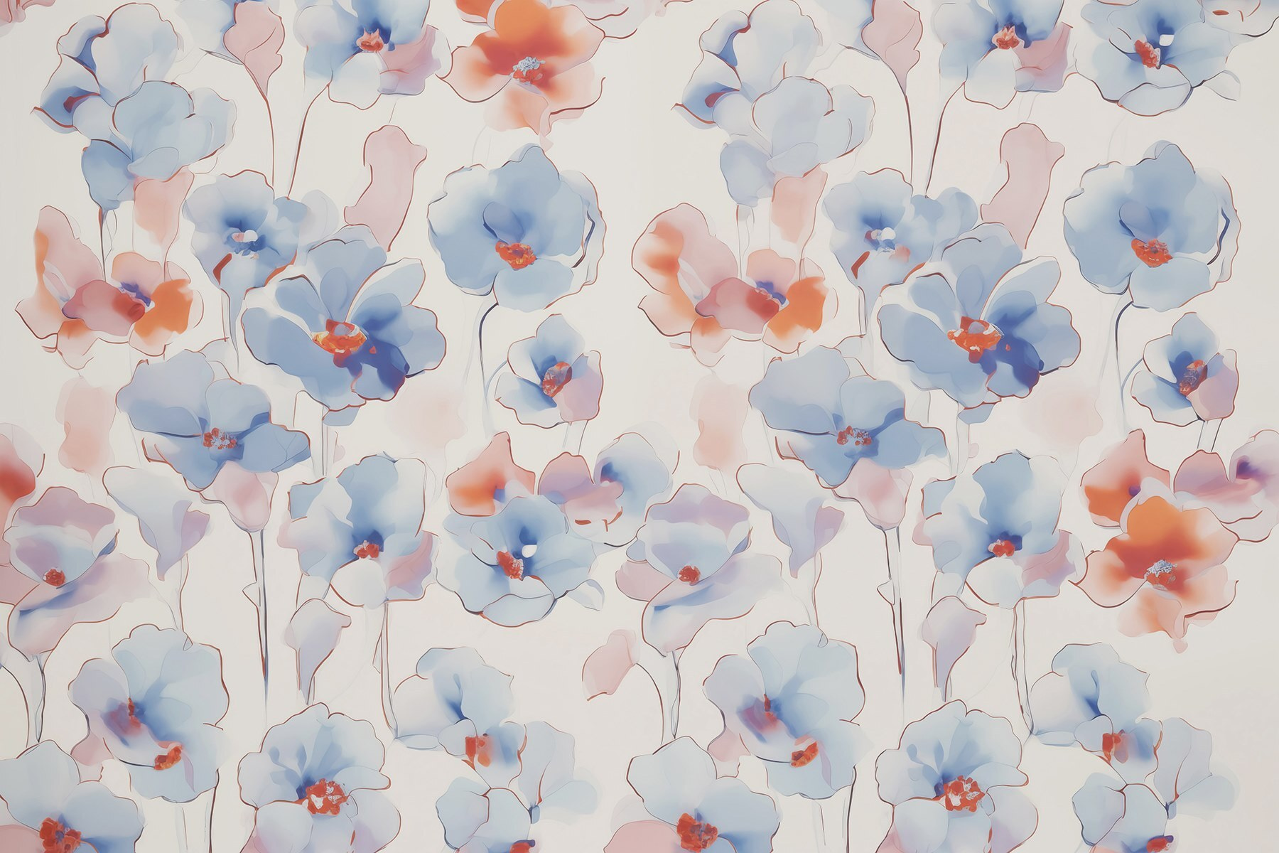 Verwandeln Sie Ihren Raum mit dieser bezaubernden Wandtapete “Fototapeten Wallpaper with Flowers”. Stellen Sie sich vor, Sie wachen auf und sind von einer Kaskade zarter Aquarellblüten in sanften Blau- und Korallentönen umgeben – es ist, als ob Sie sich einen heiteren Garten ins Haus holen. Jedes Blütenblatt scheint ein kleines Lied zu singen, das mit Ihrer Stimmung harmoniert, während das zarte Design ein künstlerisches Flair hinzufügt, das jeden Raum aufheitern kann.