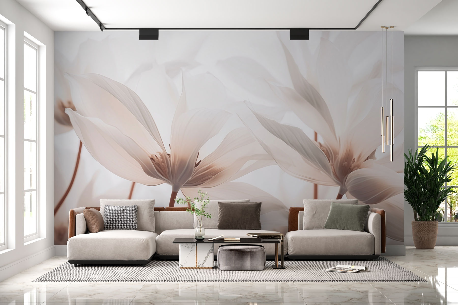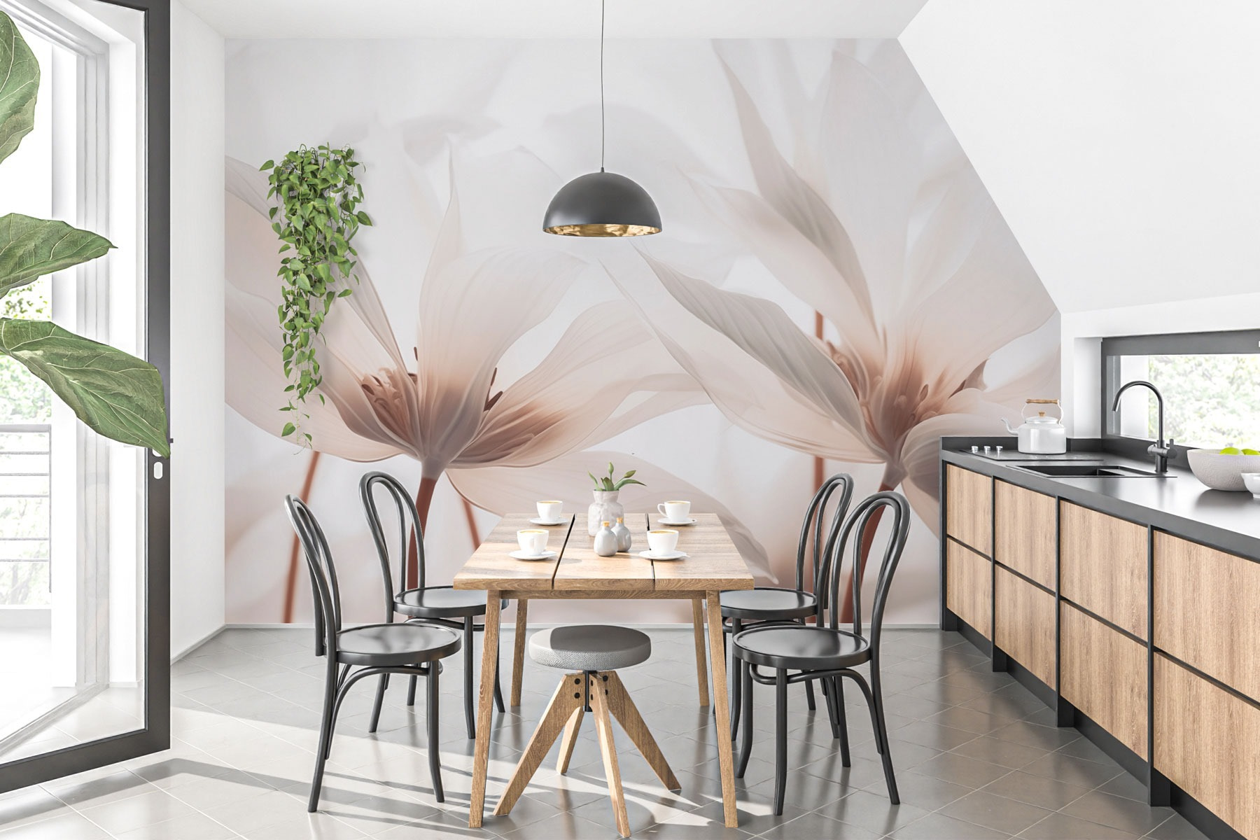 Verwandeln Sie jeden Raum mit der bezaubernden Anziehungskraft von “Delicate Petals in Soft Hues”. Diese Fototapete ist wie ein frischer Wind, der die Ecken auflockert und Ihrem Raum einen Hauch von Naturschönheit verleiht. Stellen Sie sich vor, wie Sie in Ihrer gemütlichen Ecke einen Tee schlürfen, umgeben von diesen verträumten Blüten. Sie sind nicht einfach nur Blumen, sondern eine Einladung zum Innehalten und Nachdenken. Die Pastellfarben bewirken Wunder und lassen selbst die tristesten Wände wie einen eigenen Garten lebendig werden. Perfekt für die Momente der Ruhe, in denen man sich mit der heiteren Seite des Lebens verbinden möchte. Es ist, als hätte man ein kleines Stückchen Ruhe direkt zu Hause!