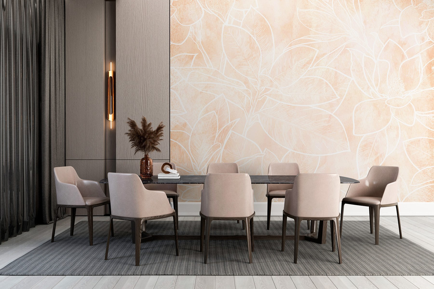 Verändern Sie jeden Raum mit dieser atemberaubenden Fototapete mit einer zarten weißen Linienzeichnung von Blumen. Es ist, als ob Sie eine sanfte Frühlingsbrise in Ihr Zuhause einladen würden. Die sanften Töne und die filigranen Designs schmücken nicht nur eine Wand, sondern bringen Wärme und einen Hauch von Natur ins Haus. Stellen Sie sich vor, Sie schlürfen einen Kaffee, während Sie sich in einem Raum aufhalten, der sowohl beruhigend als auch belebend wirkt. Sie eignen sich perfekt für eine gemütliche Ecke oder eine Akzentwand und sorgen für Gesprächsstoff – wer liebt nicht ein bisschen blumigen Charme? Ihre Wände werden es Ihnen danken!