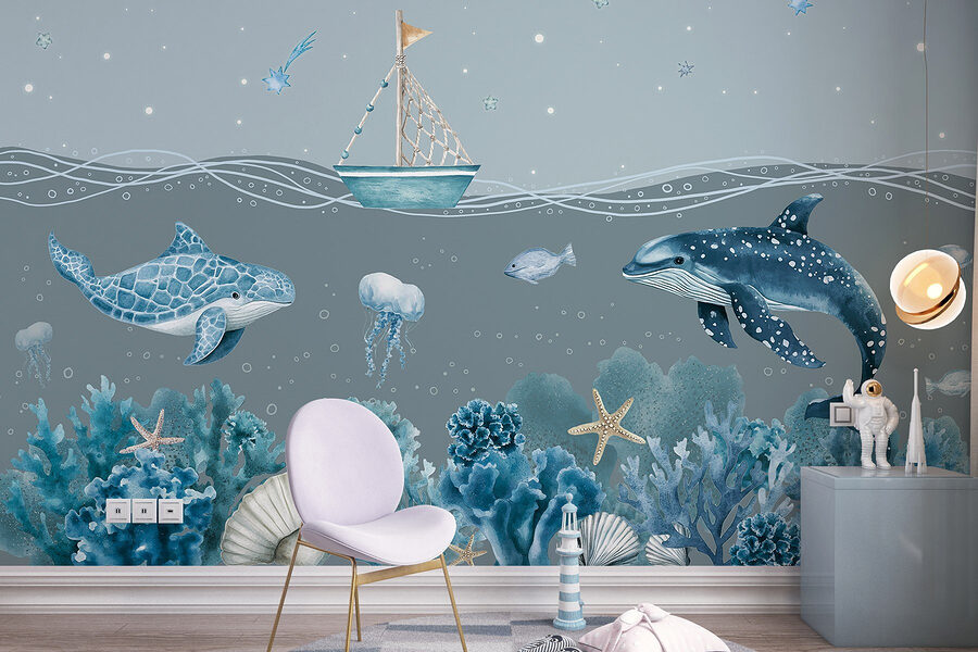 Verwandeln Sie Ihren Raum in eine heitere Unterwasserwelt mit der Fototapete “Sea Life”. Stellen Sie sich vor, Sie wachen jeden Tag mit verspielten Delfinen und sanften Quallen auf, die über Ihre Wände tanzen. Diese verträumte Szene zeigt ein charmantes kleines Boot, das durch ein ruhiges Meer gleitet, umgeben von bunten Korallen und Seesternen. Es ist, als hätte man ein Stück Ozean zu Hause – nur ohne die salzigen Haare! Diese Fototapete eignet sich perfekt für ein Kinderzimmer oder sogar eine gemütliche Leseecke und bringt einen Hauch von Laune und Ruhe. Lassen Sie die Farben auf sich wirken und schaffen Sie eine ruhige Atmosphäre, die Sie vielleicht zu Tagträumen von Abenteuern am Meer inspiriert.