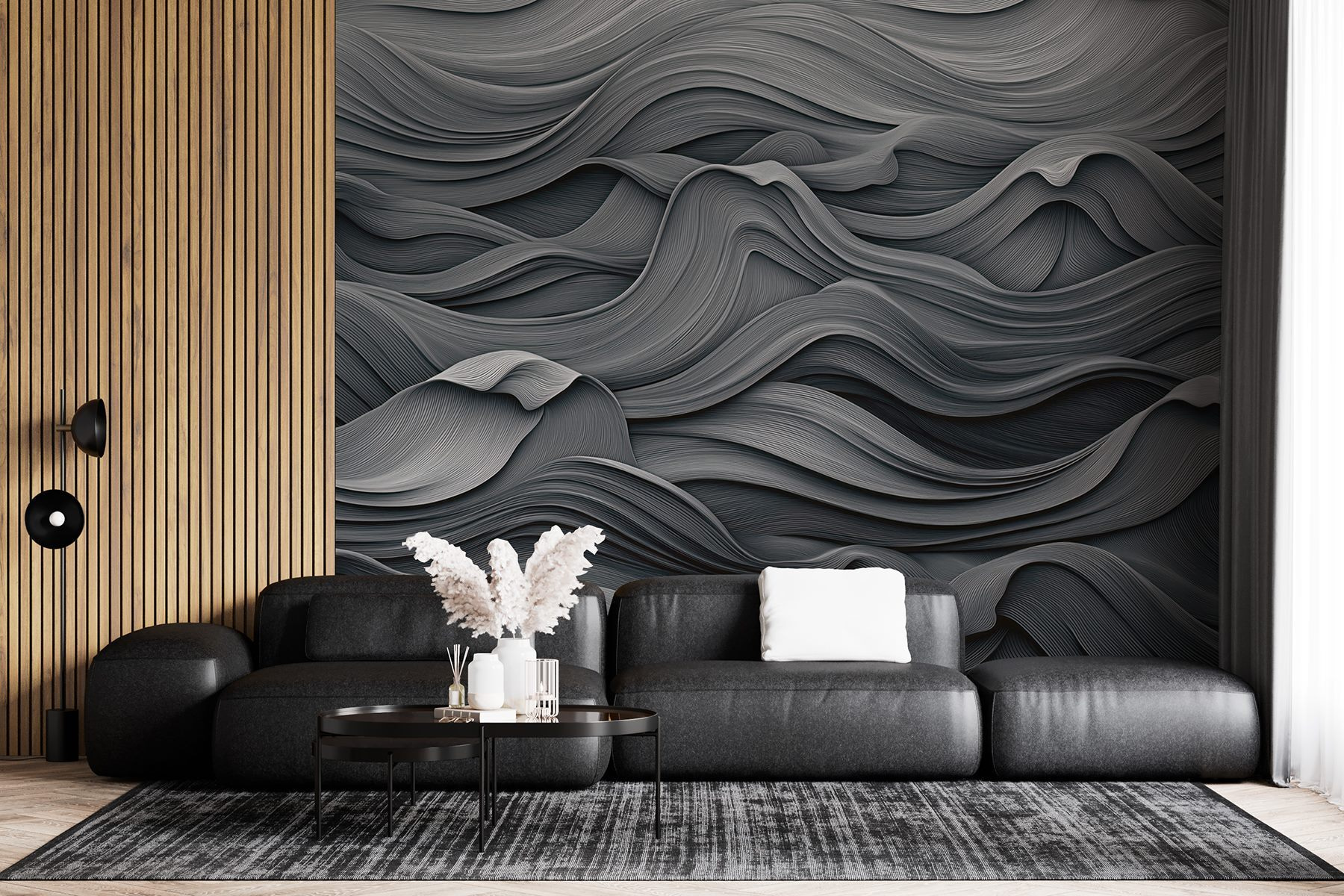 Verwandeln Sie Ihren Raum mit dieser wunderschönen grauen und weißen, welligen Fototapete. Es wirkt wie ein sanfter Wellentanz und verleiht jedem Raum eine heitere Atmosphäre, die ihn noch einladender macht. Stellen Sie sich vor, dass Ihr Wohn- oder Schlafzimmer in diese weichen, wellenförmigen Linien gehüllt ist – plötzlich ist es, als würden Ihre Wände ruhige Geheimnisse flüstern. Perfekt für gemütliche Abende oder sogar ein lebhaftes Brunch mit Freunden, denn es sorgt für Gesprächsstoff, ohne dass Sie es überhaupt versuchen. Und wer liebt nicht ein bisschen Textur? Es ist nicht nur Dekoration, es ist ein Erlebnis, das die langweiligen Wände in eine Leinwand mit subtiler Raffinesse verwandelt. Tauchen Sie ein!