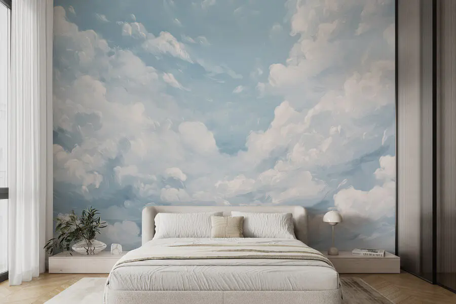 Verwandeln Sie eine schlichte Wand in einen verträumten Ort mit der Fototapete “Blauer Himmel mit Wolken”. Diese atemberaubende Fototapete vermittelt ein Gefühl der Gelassenheit, als ob man an einem perfekten Tag ins Freie tritt. Die weichen, flauschigen Wolken vor dem beruhigenden blauen Himmel lassen jeden Raum luftig und geräumig erscheinen. Stellen Sie sich vor, wie Sie in einer gemütlichen Ecke an Ihrem Kaffee nippen, auf diese herrliche Landschaft blicken und Ihren Stress vergessen. Es ist, als würde man sich ein Stück Natur ins Haus holen, nur ohne die Pollen! Perfekt, um eine friedliche Atmosphäre in Schlafzimmern oder lebendige Stimmung in Wohnräumen zu schaffen. Ob Sie nun träumen, arbeiten oder einfach nur träumen, dieses Wandbild inspiriert zu Gelassenheit und Freude.