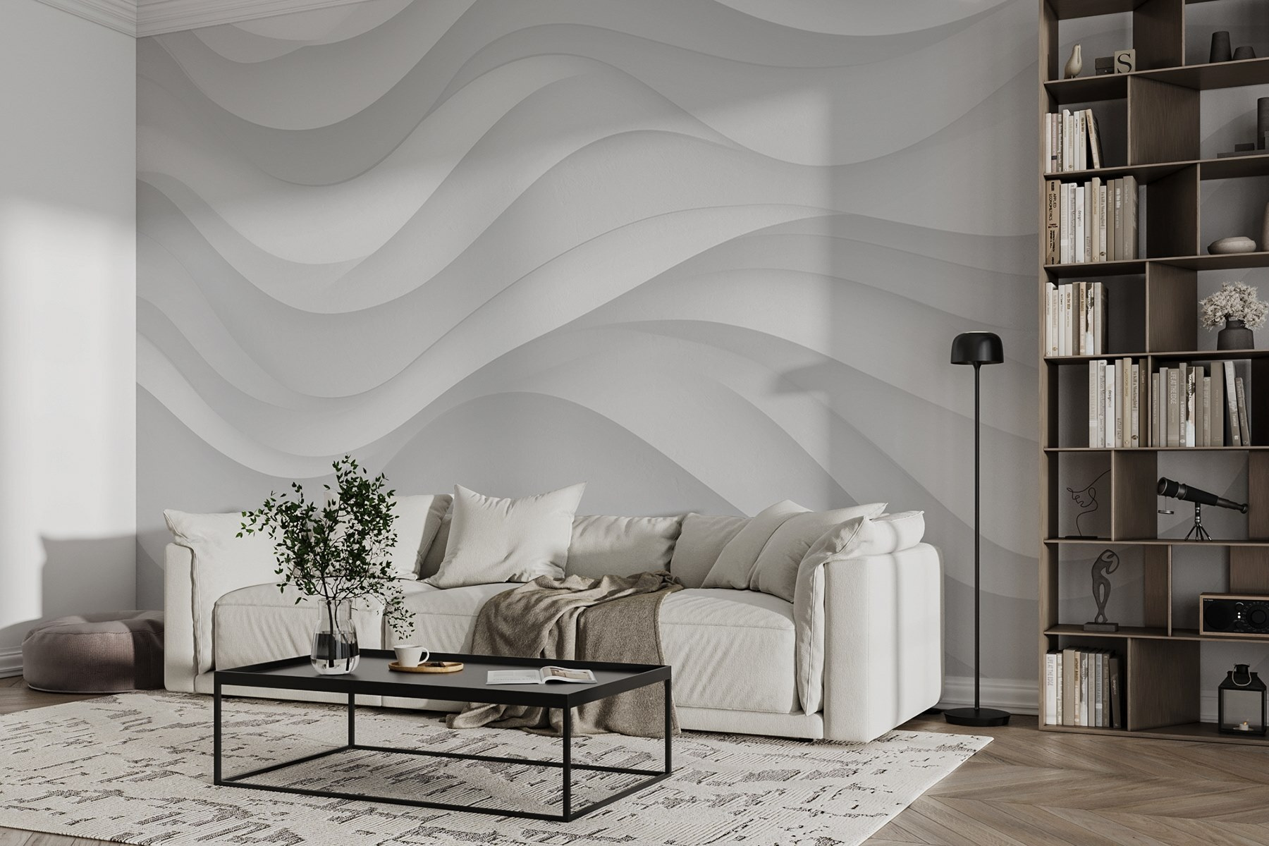 Stellen Sie sich vor, Sie betreten einen Raum, in dem die Wände wie eine sanfte Brise zu fließen scheinen – diese Fototapete tut genau das! Mit seinen sanften weißen und grauen Wellen schafft es eine ruhige Atmosphäre, die gleichzeitig modern und gemütlich wirkt. Es ist perfekt für die Momente, in denen Sie sich entspannen möchten, vielleicht mit einem guten Buch oder einer Tasse Tee. Stellen Sie sich vor: Gäste kommen herein, halten inne, um das elegante Design zu bewundern, und plötzlich wirkt der Raum wie eine schicke Galerie. Das ist nicht einfach nur eine Tapete, das ist ein Statement! Ein absoluter Wow-Faktor für jeden Raum und – seien wir ehrlich – die perfekte Kulisse für Ihr nächstes Instagram-Foto!