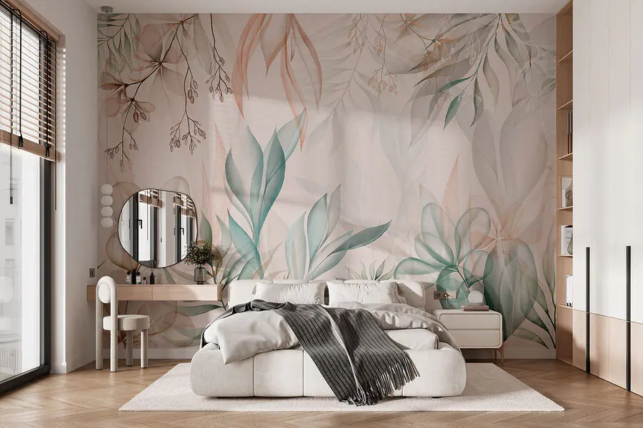 Die Verwandlung eines Raumes kann sich wie Magie anfühlen, besonders mit der Fototapete “Delicate Leaves in Soft Hues”. Stellen Sie sich das vor: Sanfte Grün- und Rosatöne tanzen miteinander und bringen einen Hauch von Natur direkt in Ihr Wohnzimmer. Es ist, als würde man eine sanfte Brise ins Haus holen, nur ohne Ungeziefer. Perfekt für die Tage, an denen Sie einen Tee trinken und so tun möchten, als wären Sie in einem gemütlichen Sonnenzimmer, auch wenn es nur eine Ecke Ihres Hauses ist.