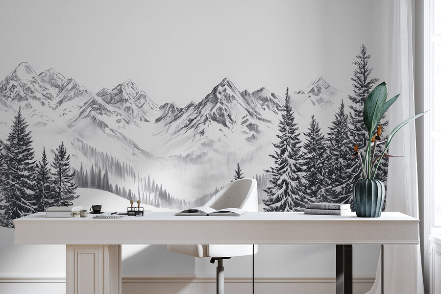 Stellen Sie sich vor, Sie betreten eine gemütliche, warme und einladende Hütte, in der Sie jedes Mal, wenn Sie einen Blick auf die Wand werfen, von der ruhigen Schönheit einer verschneiten Bergkette begrüßt werden. Diese Fototapete mit hohen, schneebedeckten Kiefern und majestätischen Gipfeln im Hintergrund verwandelt jeden Raum in ein Winterwunderland. Es ist wie ein Mini-Urlaub direkt in Ihrem Wohnzimmer – keine Schneestiefel erforderlich! Die sanften Grautöne sorgen für Ruhe, während die filigranen Details die Berge so lebendig wirken lassen. Diese Fototapete eignet sich perfekt zum Träumen oder für die Planung Ihres nächsten Ausflugs, da sie das Wort “Abenteuer” auf eine gemütliche und beruhigende Art und Weise vermittelt. Ganz gleich, ob Sie ein Fan der Natur sind oder einfach nur einen Hauch von Kühle in Ihre Einrichtung bringen wollen, dieses Wandbild definiert Ihre Wände mühelos neu. Wer hätte gedacht, dass Winterstimmung so einladend sein kann?