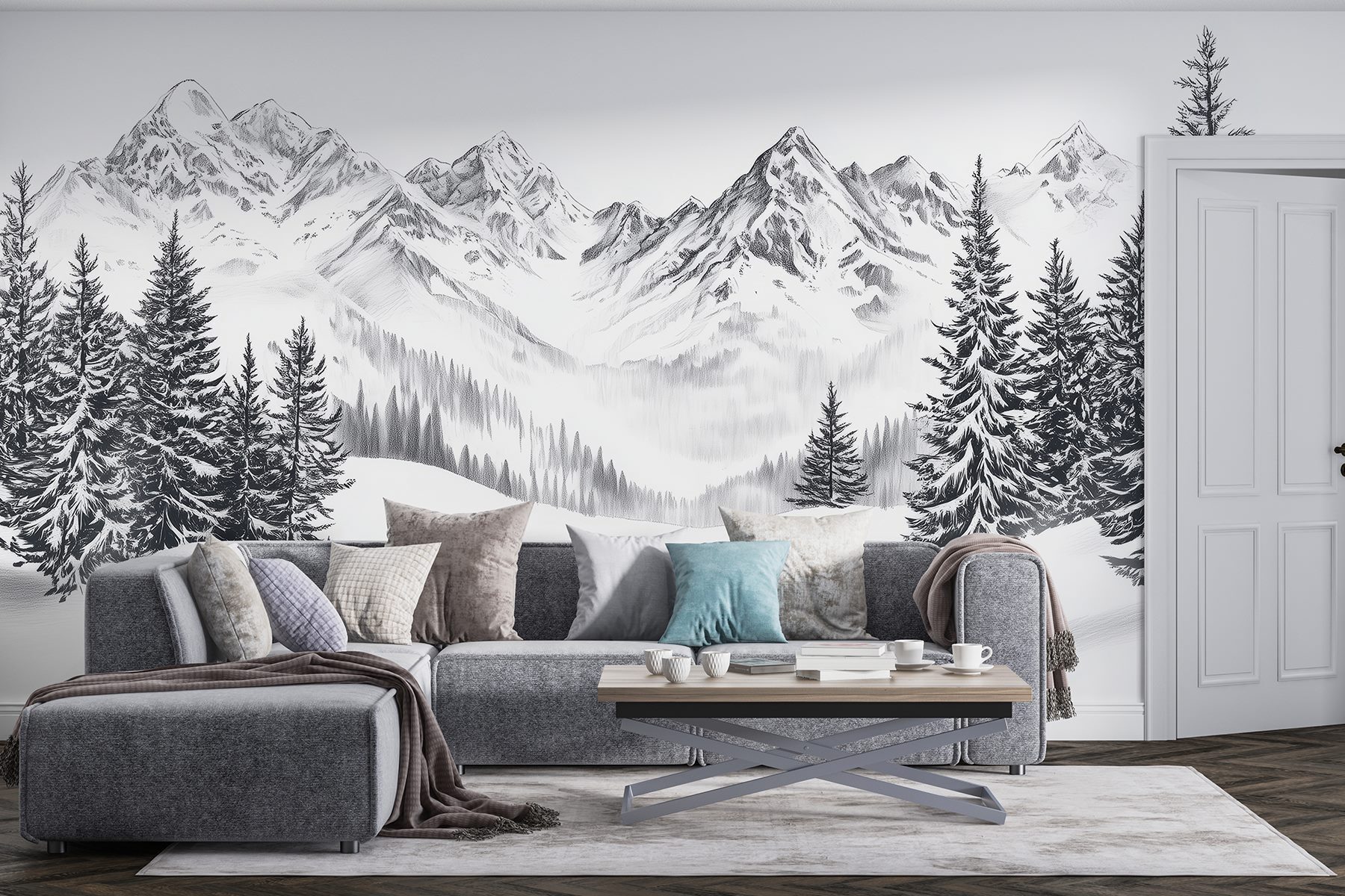 Stellen Sie sich vor, Sie betreten eine gemütliche, warme und einladende Hütte, in der Sie jedes Mal, wenn Sie einen Blick auf die Wand werfen, von der ruhigen Schönheit einer verschneiten Bergkette begrüßt werden. Diese Fototapete mit hohen, schneebedeckten Kiefern und majestätischen Gipfeln im Hintergrund verwandelt jeden Raum in ein Winterwunderland. Es ist wie ein Mini-Urlaub direkt in Ihrem Wohnzimmer – keine Schneestiefel erforderlich! Die sanften Grautöne sorgen für Ruhe, während die filigranen Details die Berge so lebendig wirken lassen. Diese Fototapete eignet sich perfekt zum Träumen oder für die Planung Ihres nächsten Ausflugs, da sie das Wort “Abenteuer” auf eine gemütliche und beruhigende Art und Weise vermittelt. Ganz gleich, ob Sie ein Fan der Natur sind oder einfach nur einen Hauch von Kühle in Ihre Einrichtung bringen wollen, dieses Wandbild definiert Ihre Wände mühelos neu. Wer hätte gedacht, dass Winterstimmung so einladend sein kann?