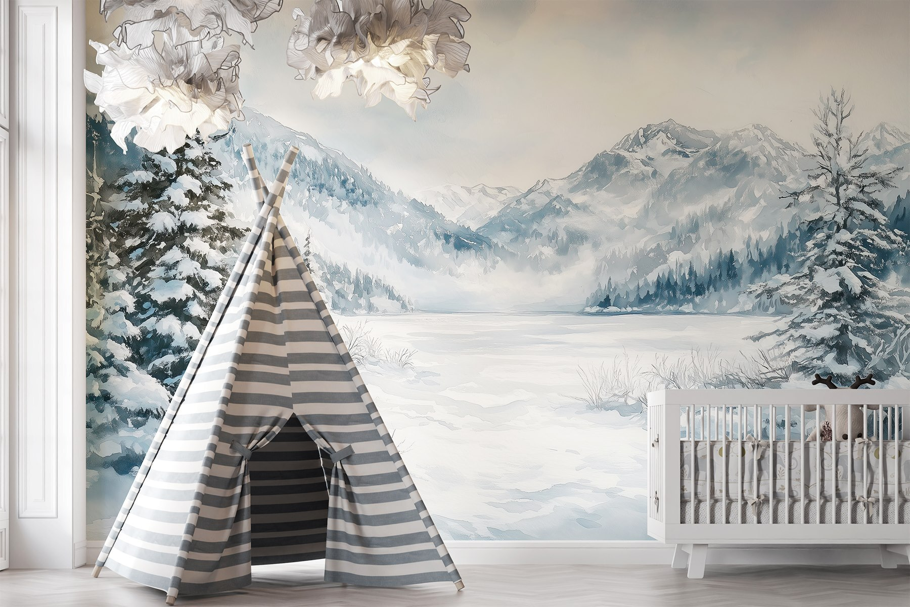 Verwandeln Sie Ihren Raum in ein Winterwunderland mit dieser atemberaubenden Fototapete, die eine verschneite Landschaft mit majestätischen Bäumen und Bergen zeigt. Stellen Sie sich vor, wie Sie an einem heißen Kakao nippen, während Sie auf die heitere Szenerie blicken – es ist, als ob Sie die Ruhe eines verschneiten Urlaubs direkt in Ihr Wohnzimmer bringen würden. Die sanften Weiß- und Grautöne vermitteln eine gemütliche, friedliche Atmosphäre, die perfekt ist, um sich nach einem langen Tag zu entspannen. Stellen Sie sich diese Fototapete als Kulisse vor, die zu Gesprächen und Tagträumen von frostigen Abenteuern anregt. Wer braucht schon Schneestiefel, wenn diese Fototapete für die richtige Stimmung sorgt? Ideal für alle, die die Schönheit der Natur genießen wollen, ohne zu frieren!