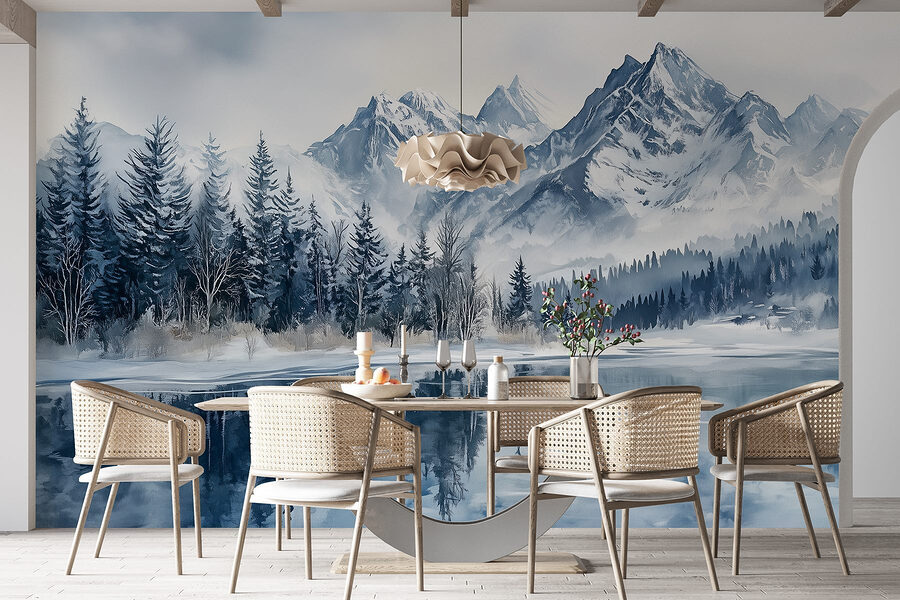 1 Rezension für Fototapeten See mit schneebedeckten Bergen und Bäumen