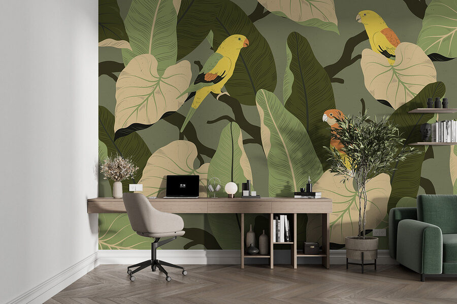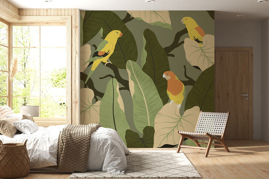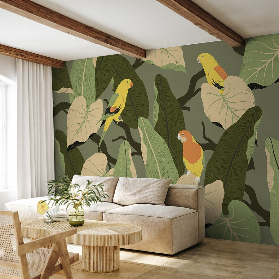 Verwandeln Sie jeden Raum in ein üppiges Paradies mit dieser farbenfrohen Fototapete mit bunten Vögeln auf belaubten Ästen! Stellen Sie sich vor, Sie betreten einen Raum, in dem tropische Schwingungen wie eine sanfte Brise wehen. Diese fröhlichen gefiederten Freunde scheinen zu singen und laden Sie ein, innezuhalten und die Schönheit um sie herum zu genießen. Diese Fototapete eignet sich perfekt für eine Leseecke oder einen belebten Essbereich und bringt einen Hauch von Natur ins Haus – ohne dass man einen grünen Daumen braucht! Außerdem sorgt es für Gesprächsstoff und regt zu Geschichten über Reisen in exotische Gegenden an. Wer würde nicht gerne von solch einem Charme umgeben aufwachen? Es ist wie ein Mini-Urlaub direkt zu Hause!