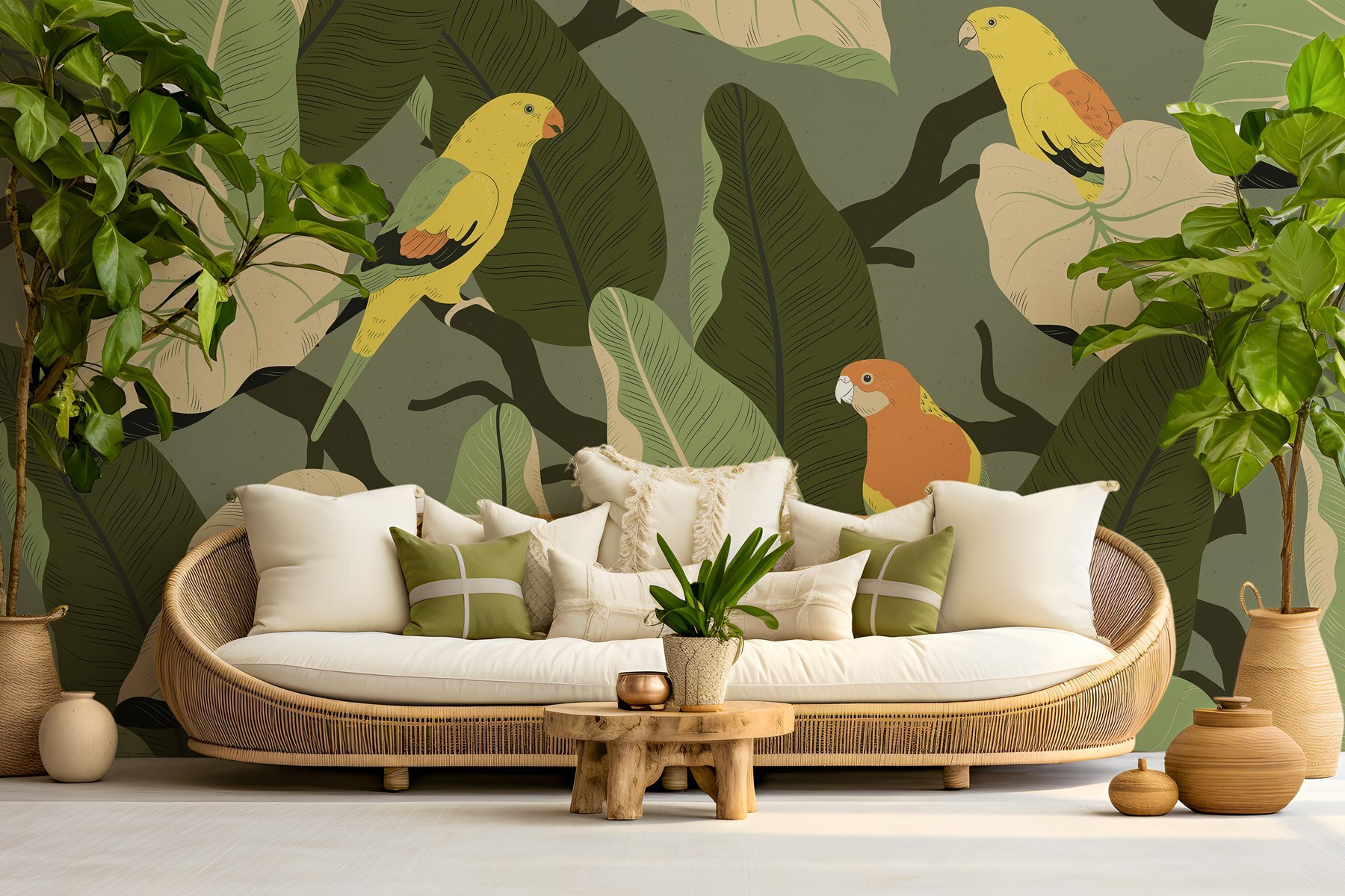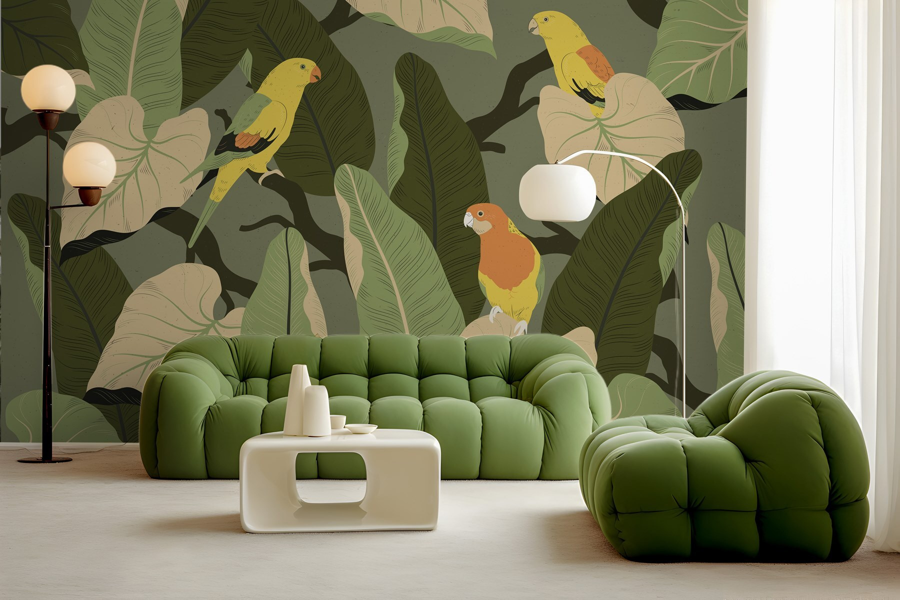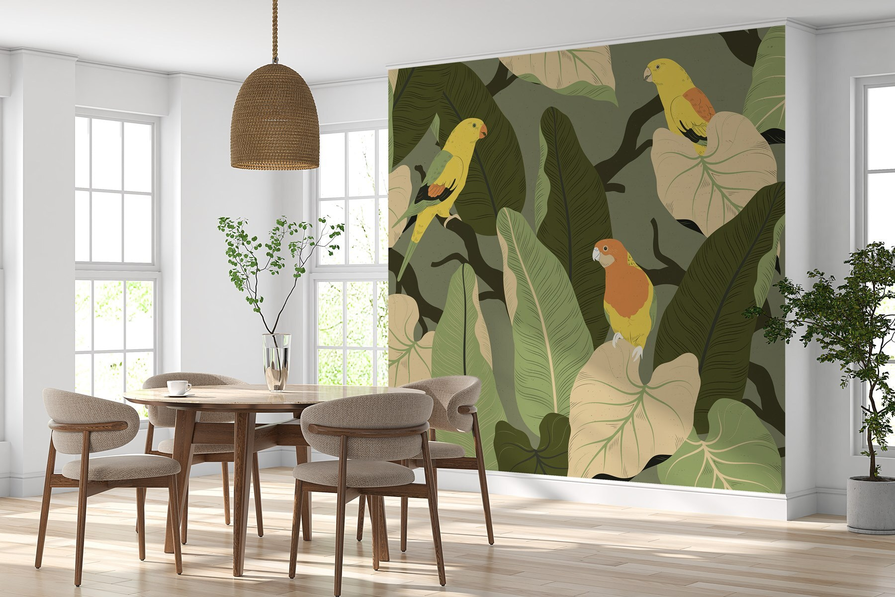 Verwandeln Sie jeden Raum in ein üppiges Paradies mit dieser farbenfrohen Fototapete mit bunten Vögeln auf belaubten Ästen! Stellen Sie sich vor, Sie betreten einen Raum, in dem tropische Schwingungen wie eine sanfte Brise wehen. Diese fröhlichen gefiederten Freunde scheinen zu singen und laden Sie ein, innezuhalten und die Schönheit um sie herum zu genießen. Diese Fototapete eignet sich perfekt für eine Leseecke oder einen belebten Essbereich und bringt einen Hauch von Natur ins Haus – ohne dass man einen grünen Daumen braucht! Außerdem sorgt es für Gesprächsstoff und regt zu Geschichten über Reisen in exotische Gegenden an. Wer würde nicht gerne von solch einem Charme umgeben aufwachen? Es ist wie ein Mini-Urlaub direkt zu Hause!
